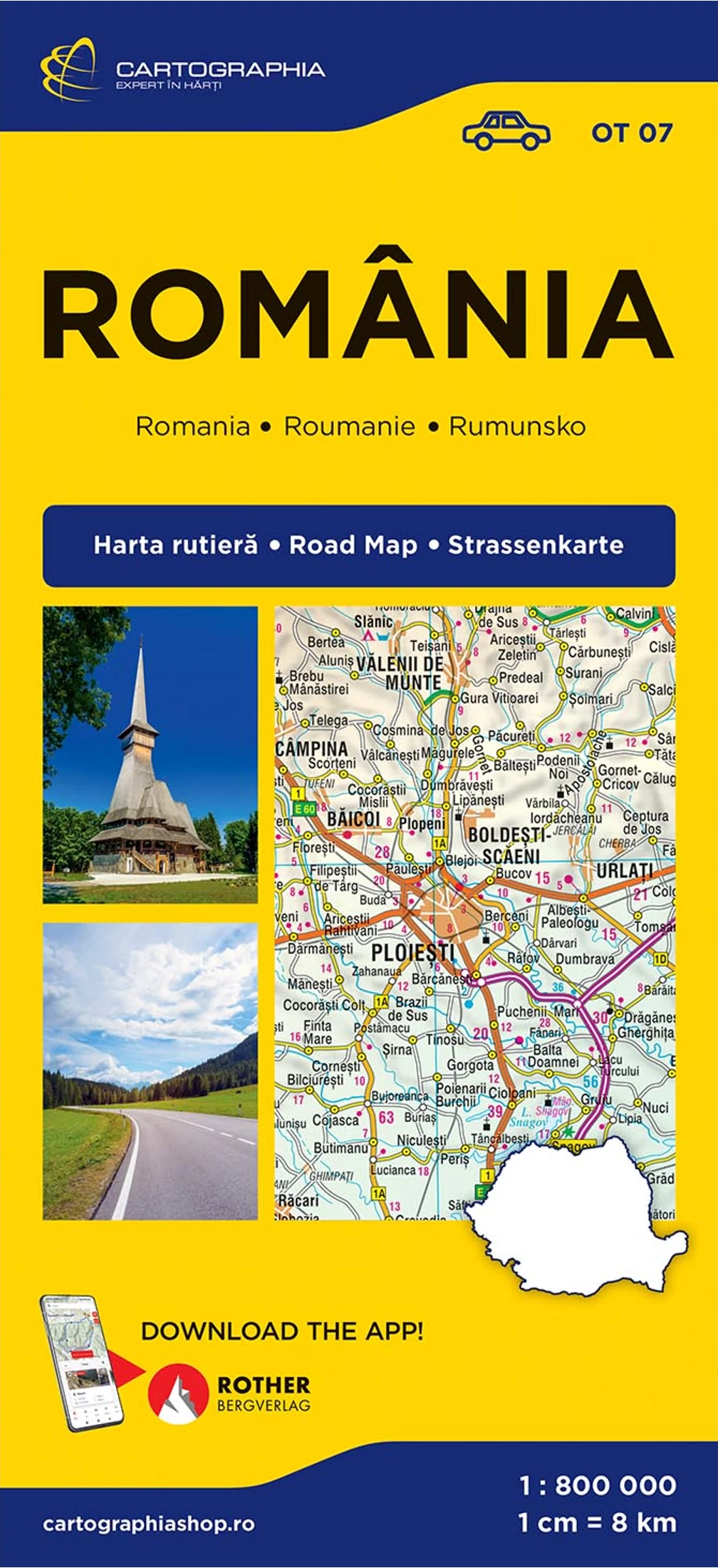 Harta României la scara 1:800.000. Esențială pentru condus și planificarea rutelor, conține toate informațiile importante.