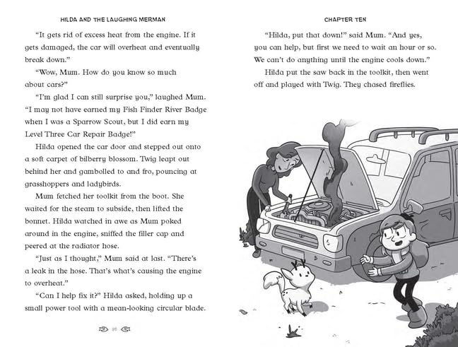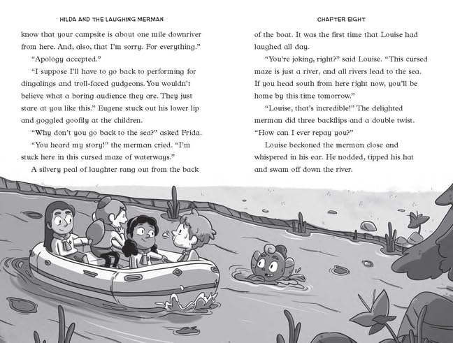 But, when her expedition map gets lost and she encounters a merman fleeing a vicious sea serpent, Hilda is flung into her newest adventure. Can Hilda find her way out of the waterways and escape a surprise encounter with a spider frog, or are her hopes of earning the Sparrow Scouts badge ruined?