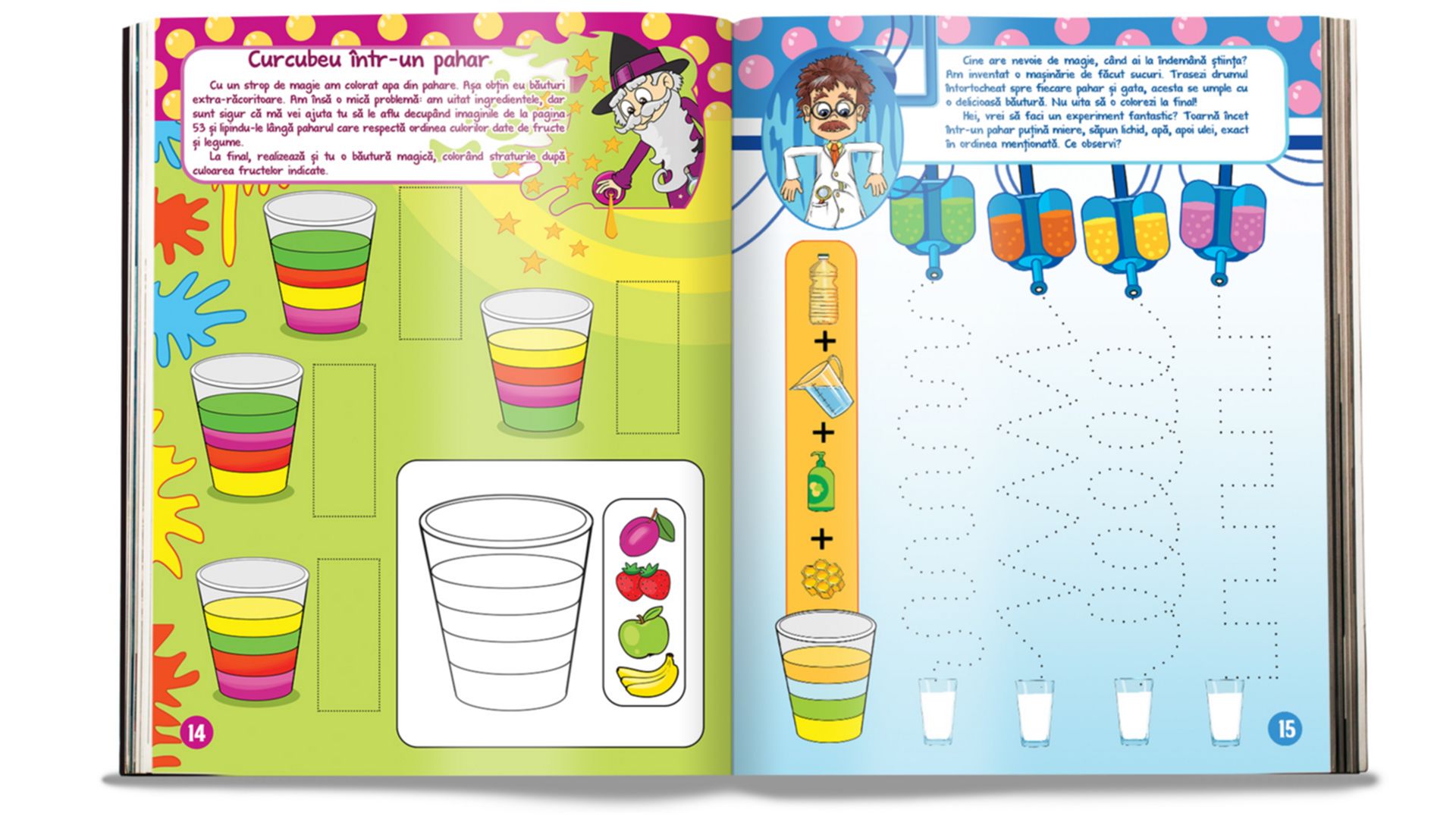 Aplicația educativă conține 10 jocuri educative și distractive, 10 experimente și 31 de animații. Cu ajutorul lor, copilul descoperă magia științei prin experimente simple, pe înțelesul lor, ușor de realizat acasă.