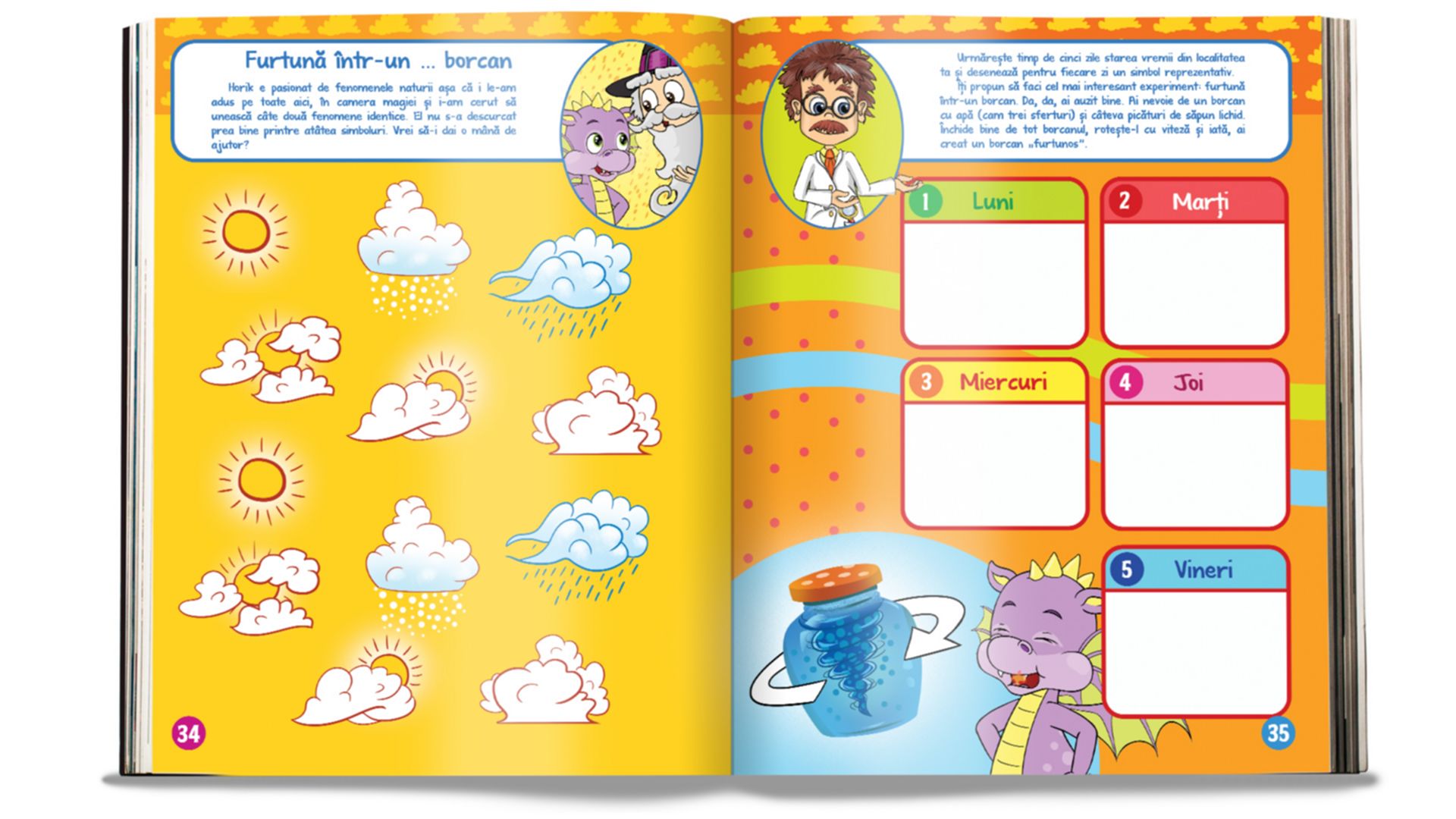Revista are 64 de pagini color, pline cu activități de învățare integrată. Multe dintre sarcinile de lucru presupun și activități practice (decupare, lipire), foarte utile pentru formarea dexterității la vârsta preșcolară.