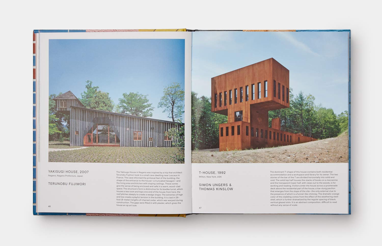 The 400 houses in this collection are organized in curated pairings, with each entry featuring an evocative image and an engaging description. Styles presented include Modernism, Postmodernism, Brutalism, Regionalism, Deconstructivism, and International Style. Houses are from countries and locations worldwide that are famed for their houses, such as Australia and Japan, the Case Study Houses in Los Angeles, New Canaan in Connecticut, and Fire Island in New York.