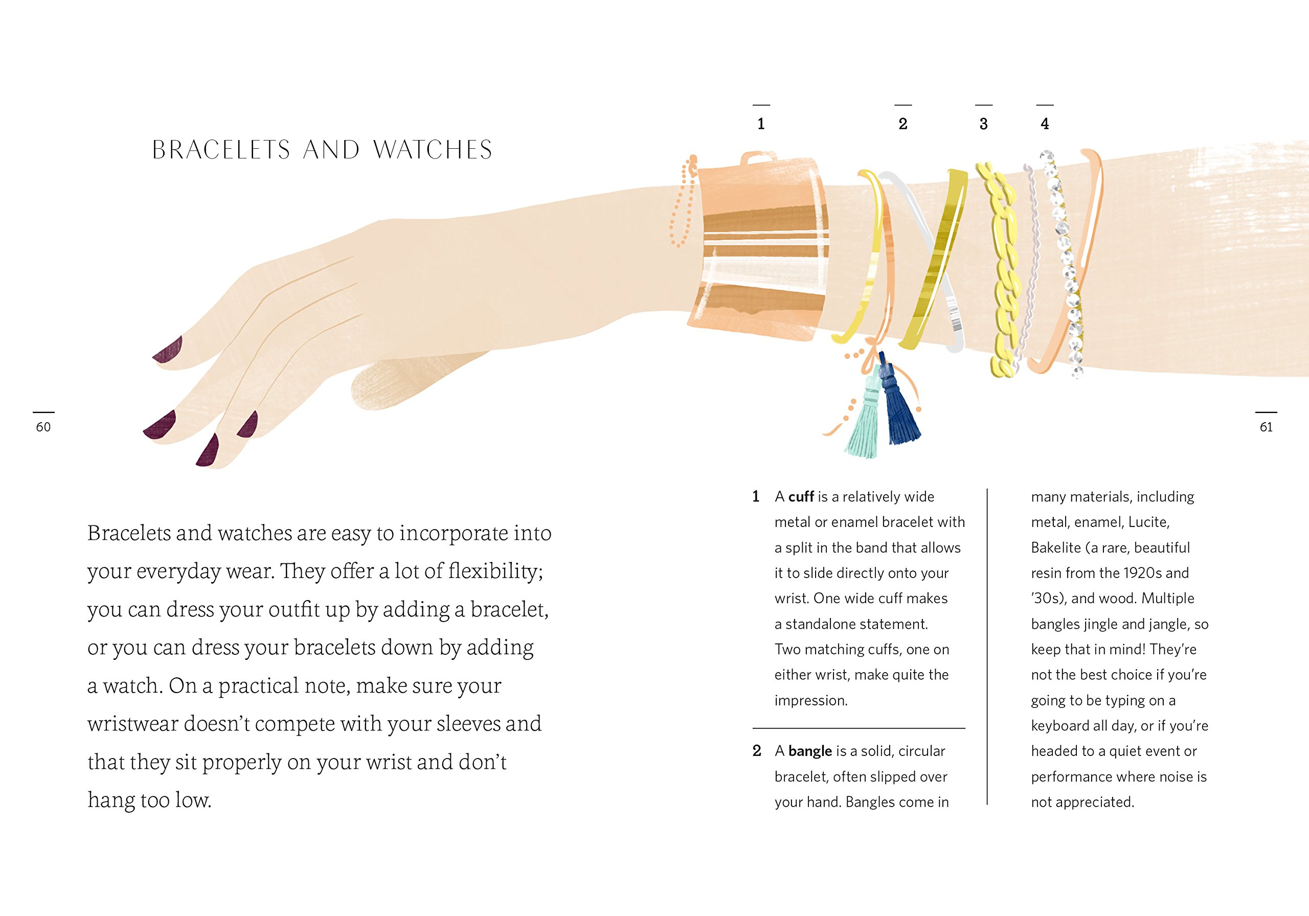 - A Flick of the Wrist: Learn to layer cuffs, bangles, chain bracelets, and charms.