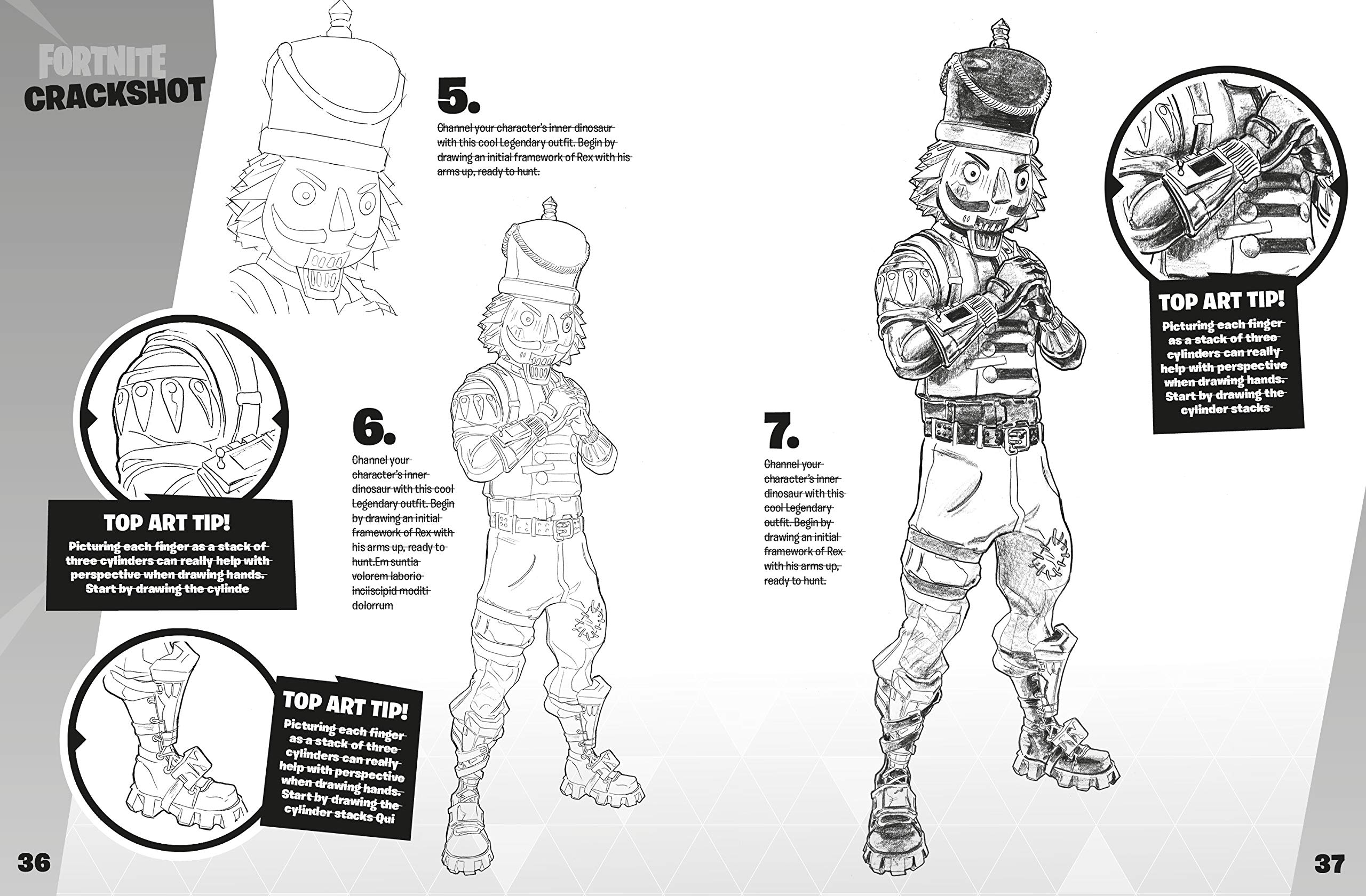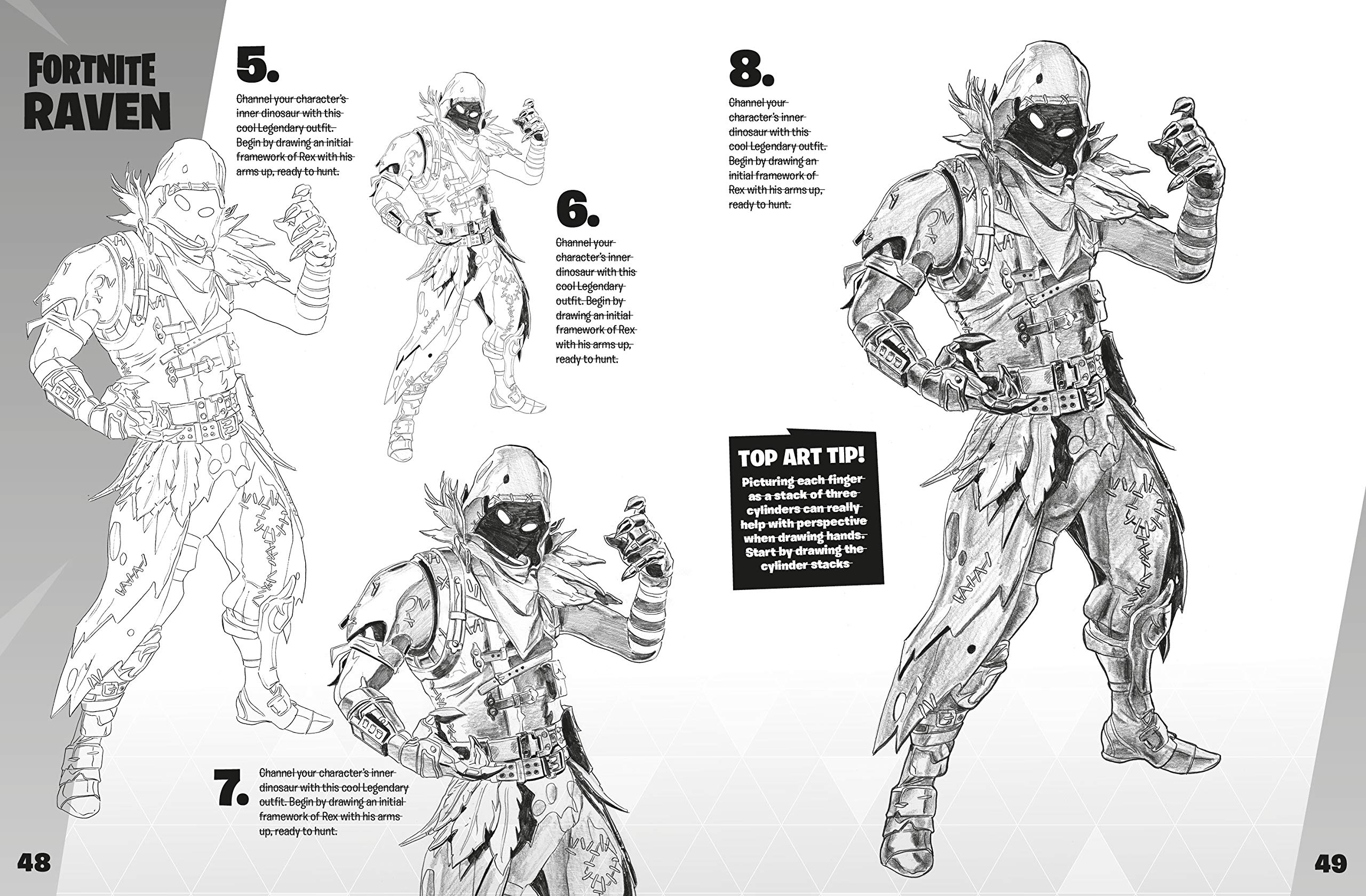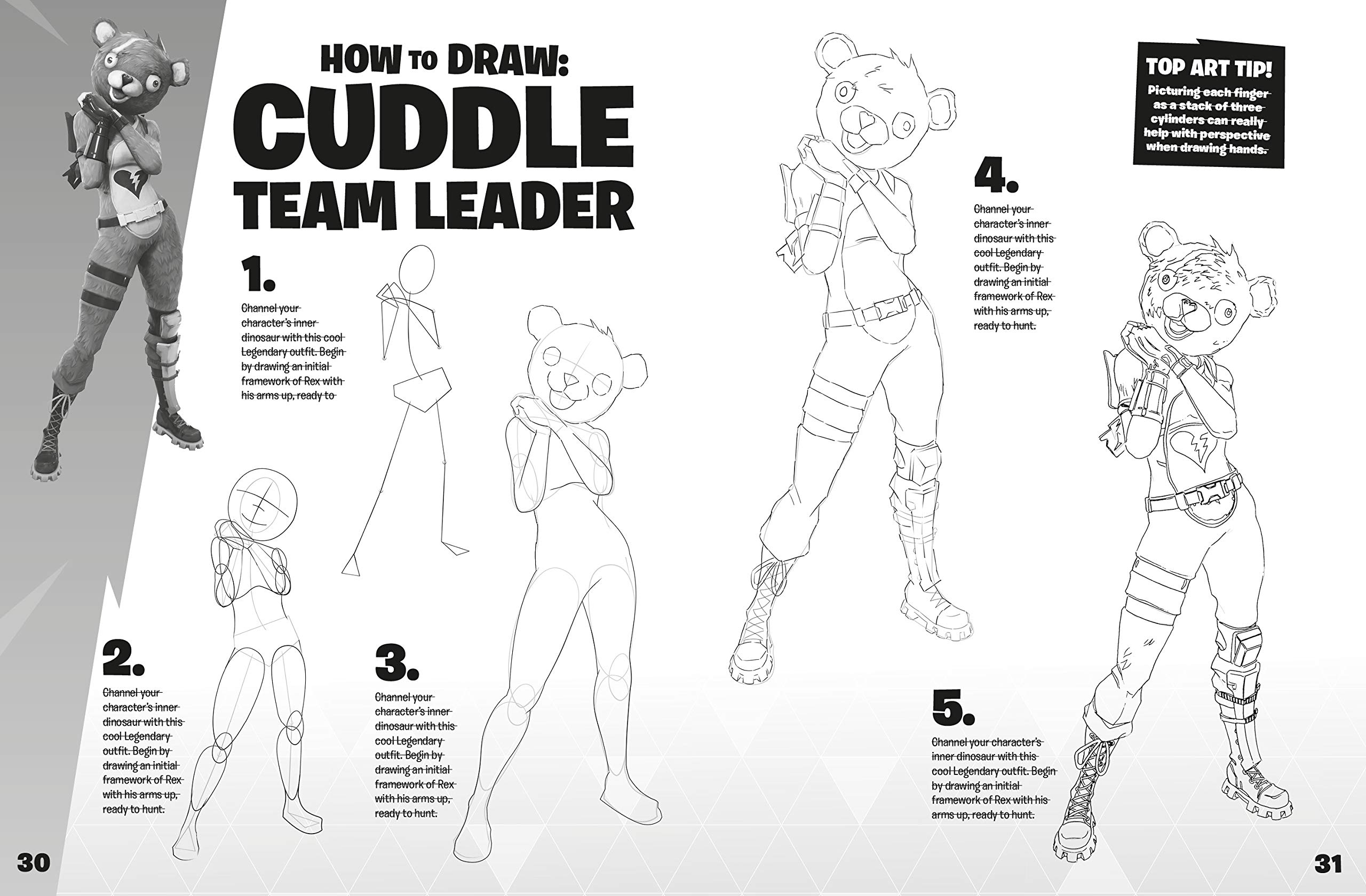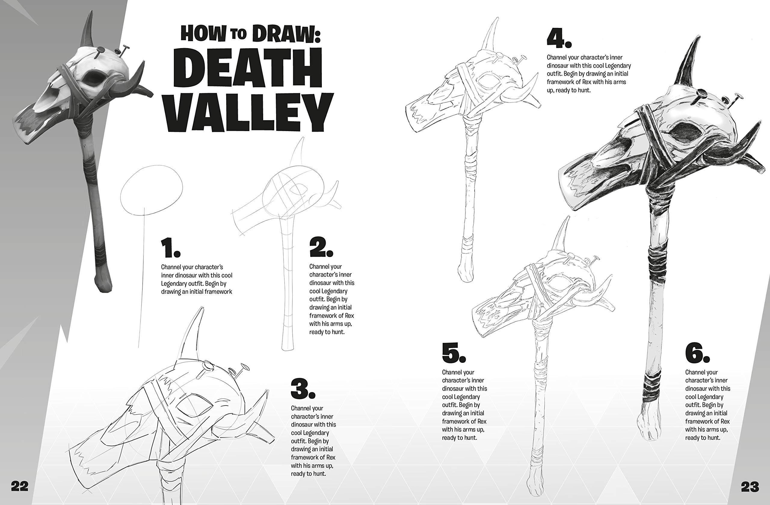 Learn how to draw 35 of the games most popular icons-including Outfits, weapons, building materials, and vehicles. In easy-to-follow stages, you'll go step-by-step from rough sketch to detailed finish.