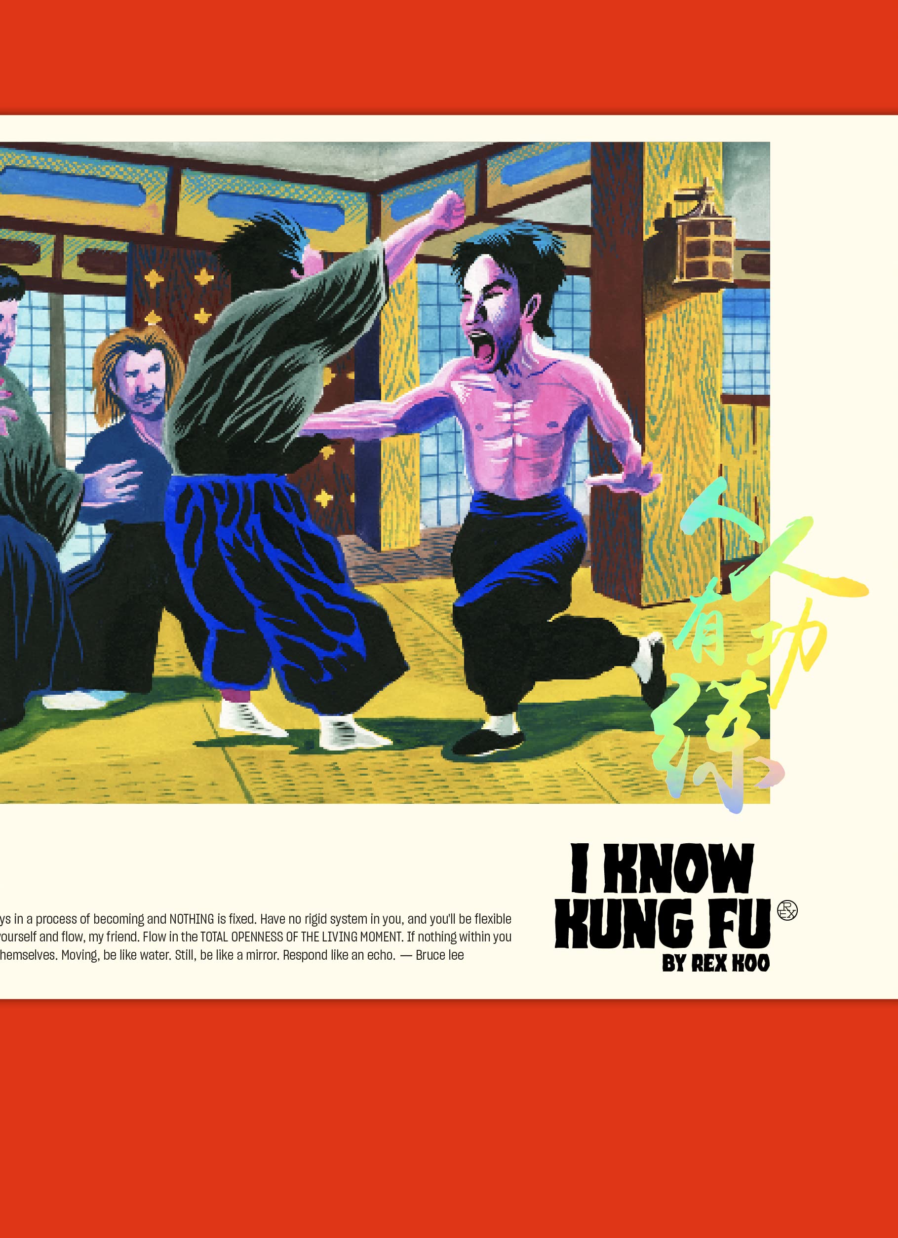 Inspired by classic kung fu flicks from the 1980s and 1990s, Hong Kong-based cult illustrator Rex Koo pays tribute to the heroes from his childhood in I KNOW KUNG FU – an art book that celebrates the much-loved shows and stars that have made Chinese martial arts into the global pop-culture phenomenon that it is today. Drawing from the popular kung fu movies – “Once Upon a Time in China” series, “Shaolin Soccer”, “Kung Fu Hustle”, and “The Grandmaster” – Koo brings to life the legendary tales and lore behind fan-favorite fighting techniques such as the “Wing Chun”, “Magic Power of Toad”, and “Tai Chi Fist” in his distinct, nuanced style. Readers can expect over 250 pages of compelling and character-filled illustrations depicting featured moves and film stills. The final section of the book features biographies and iconic depictions of the actors and producers that have made a mark on local and international kung fu cinema including Bruce Lee, Jackie Chan, Michelle Yeoh, Donnie Yew and Jet Li, to name a few.