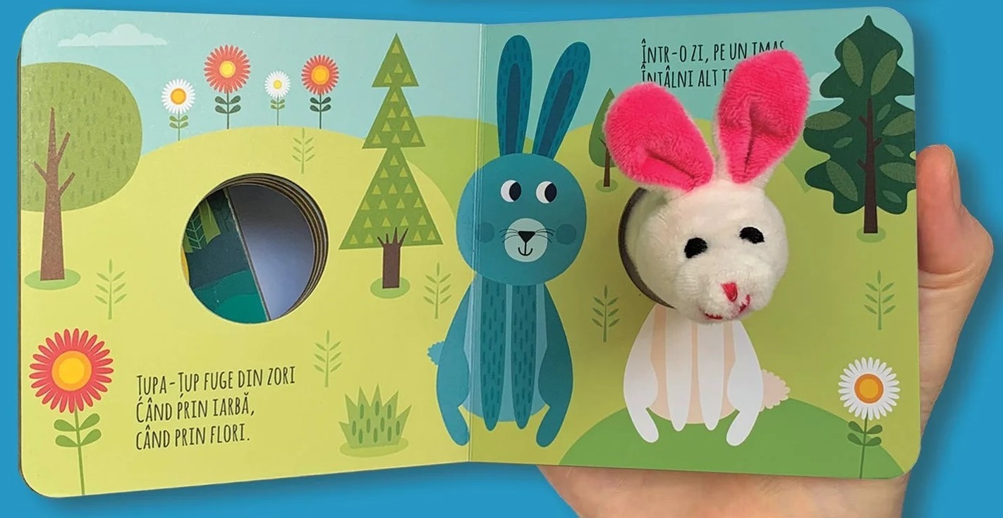 Cu o păpușă de deget, această carte este, pentru cei mici, o bună și captivantă modalitate să descopere puii de animale și mediul în care aceștia trăiesc, în timp ce se joacă și ascultă versurile de pe fiecare pagină.