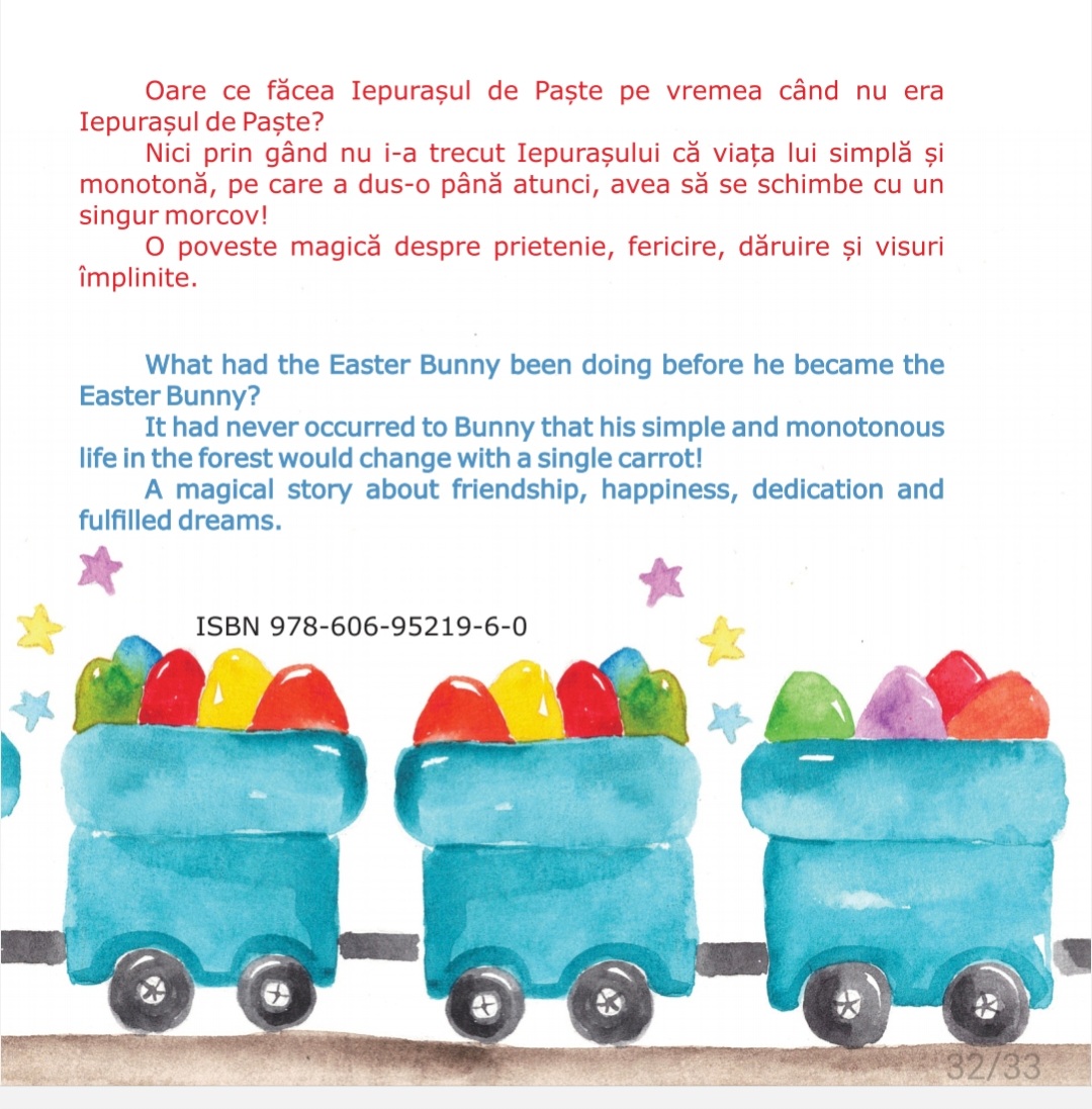 ”Iepurasul de Paste" este o poveste emotionanta despre puterea de a crede in propriile visuri si despre gasirea scopului in viata. O aventura magica care va incanta si inspira cititorii de toate varstele!