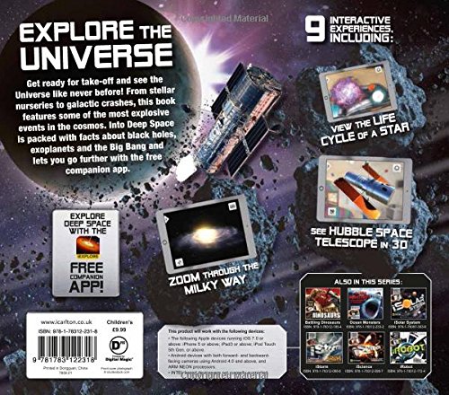 Place your tablet or smartphone near the visual trigger on the page then hold it up to see NINE incredible AR sequences in action. iExplore - Into Deep Space is jam-packed with incredible facts about space, and allows you to get up close to amazing constellations, supernovae and distant planets of the solar system. Get ready for takeoff!