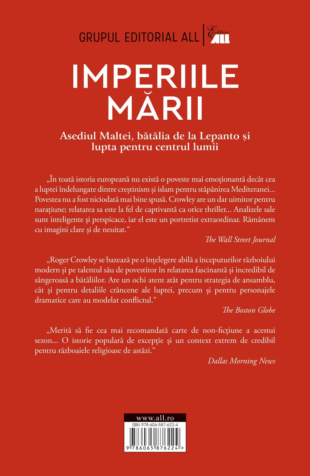 Roger Crowley este un istoric reputat, iar cărțile sale au devenit bestsellere grație stilului captivant în care valorifică sursele istorice – evenimentele trecutului prind viață cu detalii cinematografice. În Imperiile Mării, ne oferă o relatare palpitantă a conflictului dintre Imperiul Otoman și puterile europene pentru stăpânirea Mediteranei.