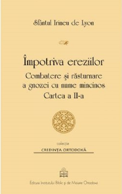Speram ca traducerea celei de a doua carti din opera Impotriva ereziilor, publicatie inedita a Editurilor Patriarhiei Romane, va fi de folos celor care cauta cuvantul proaspat al apologetilor primelor veacuri crestine si tuturor celor care studiaza importanta epoca a perioadei de inceput a crestinismului, precizeaza Cuvantul inainte al editorilor.