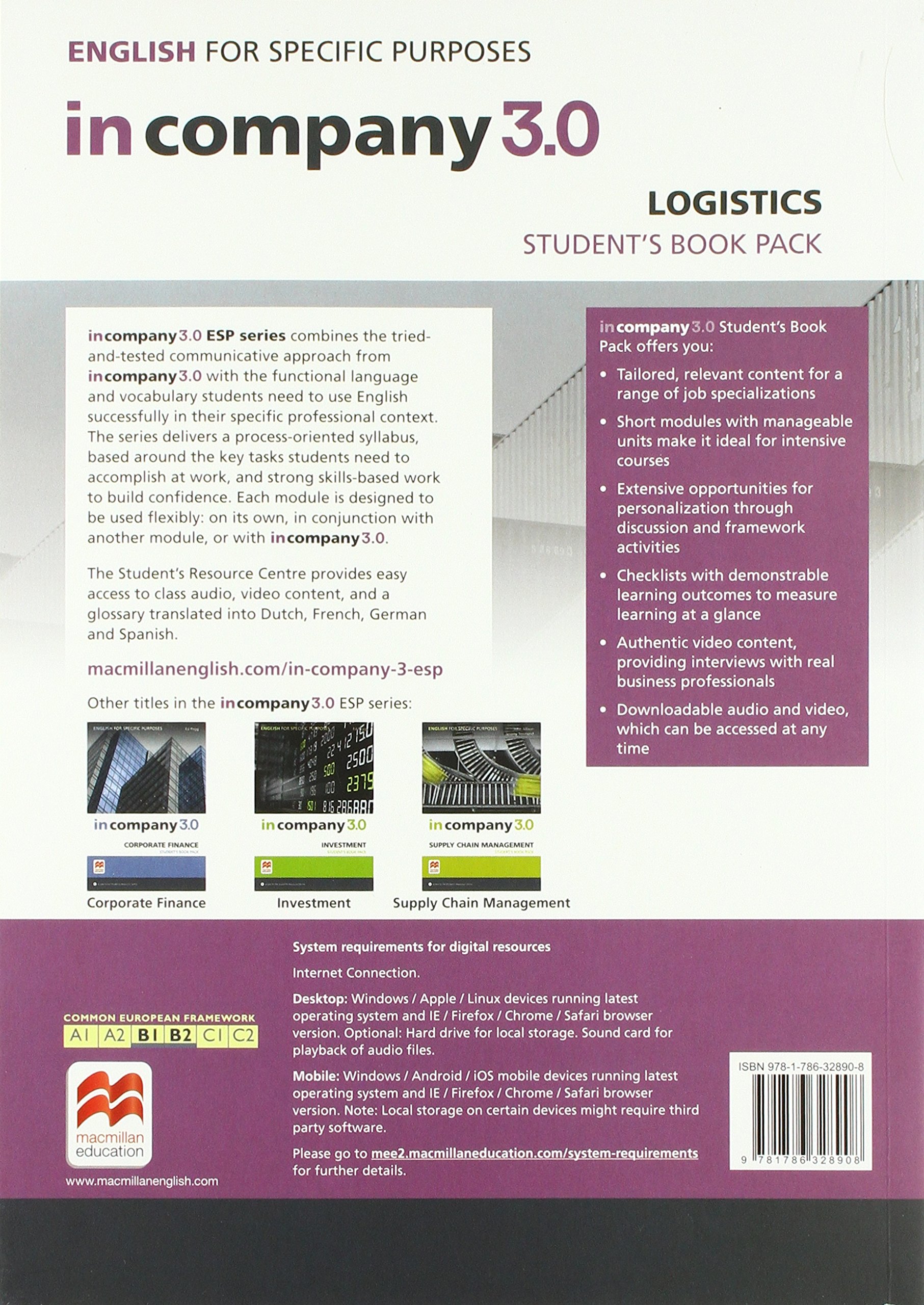 In Company 3.0 now offers new ESP modules for business professionals who require tailored content for their specialist areas. These new titles incorporate the highly popular, tried-and tested communicative approach of the In Company series along with the functional language and vocabulary that students need. The process-oriented syllabus is based around key tasks learners need to accomplish at work, as well as skills-based work to build confidence. The modules can be used flexibly: in conjunction with In Company 3.0, with other titles, or alone as a short course.