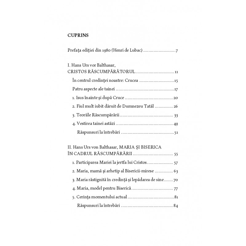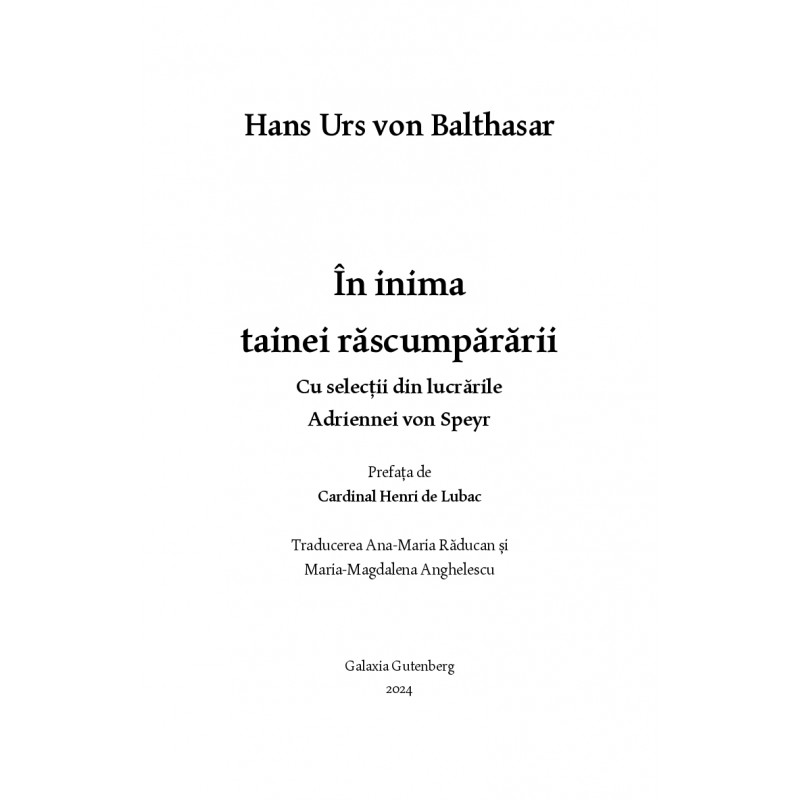 Hans Urs von Balthasar (1905-1988), preot elveţian, numit cardinal de Papa Ioan Paul al II-lea, este unul dintre cei mai importanţi teologi catolici ai secolului XX. Opera sa cuprinde zeci de cărţi publicate, inclu-zând marea sa Trilogie: Slava-Teodramatica-Teologica.