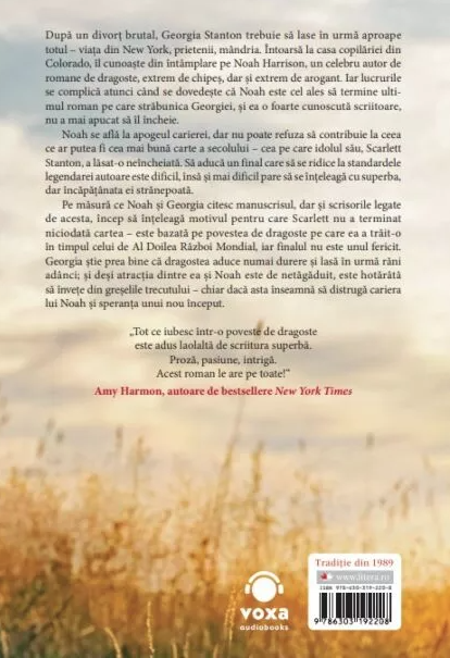 După un divorț brutal, Georgia Stanton trebuie să lase în urmă aproape totul – viața din New York, prietenii, mândria. Întoarsă la casa copilăriei din Colorado, îl cunoaște din întâmplare pe Noah Harrison, un celebru autor de romane de dragoste, extrem de chipeș, dar și extrem de arogant. Iar lucrurile se complică atunci când se dovedește că Noah este cel ales să termine ultimul roman pe care străbunica Georgiei, și ea o foarte cunoscută scriitoare, nu a mai apucat să îl încheie.