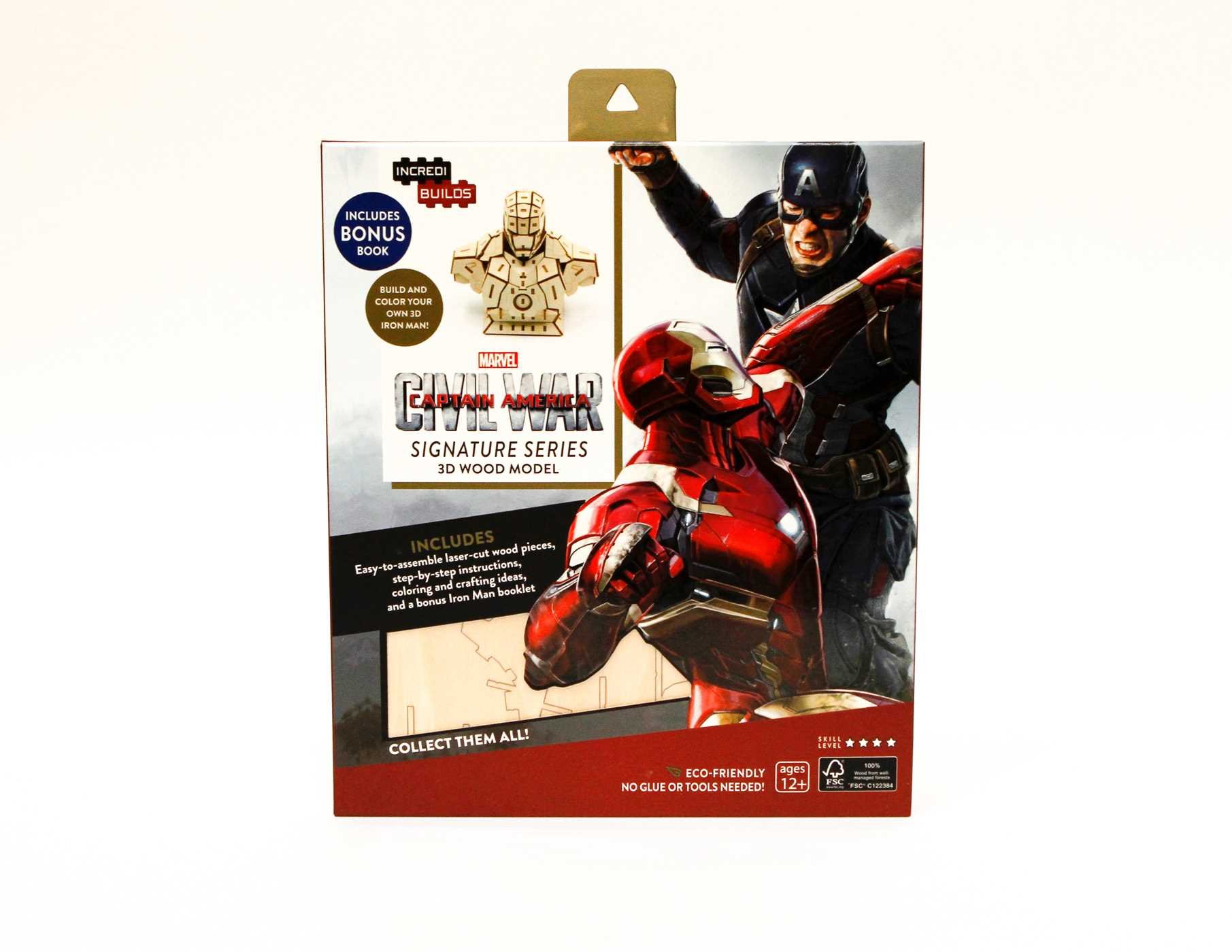 Wounded, captured, and forced to build a weapon by his enemies, billionaire industrialist Tony Stark instead created an advanced suit of armor to save his life and escape captivity. Now with a new outlook on life, Tony uses his resources and intelligence to make the world a safer, better place as Iron Man. Now fans can create a wood model of Tony Stark’s Iron Man armor with this deluxe model set. Fun and interactive, IncrediBuilds: Marvel’s Captain America: Civil War: Iron Man 3D Wood Model is the perfect gift for fans of the films.