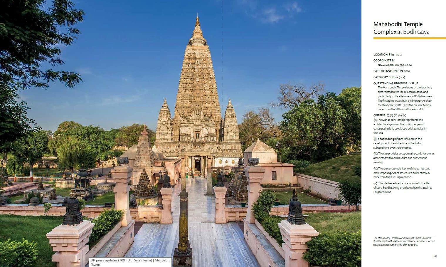 The cultural sites in India are a rich repository of the country's long, layered history, bearing witness to the creativity and influence of multiple communities, crafts and religions. The sites covered in this volume range across the length and breadth of India-from the earliest periods of rock art, Buddhist caves and Hindu temples, Sultanate and Mughal forts, palaces, tombs and memorials, medieval Hindu and Islamic cities, step-wells and observatories to Portuguese churches, Victorian and Art Deco ensembles to, finally, 20th-century industrial and modern heritage sites. The natural and mixed sites include national parks of exceptional natural beauty and sites of long interaction between people and the landscape.