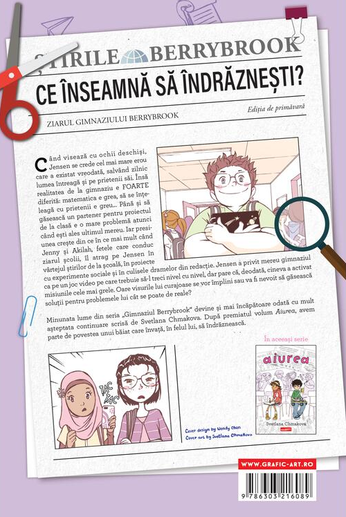 Minunata lume din seria „Gimnaziul Berrybrook" devine şi mai încăpătoare odată cu mult așteptata continuare scrisă de Svetlana Chmakova. După premiatul volum Aiurea, avem parte de povestea unui băiat care învață, în felul lui, să îndrăznească.