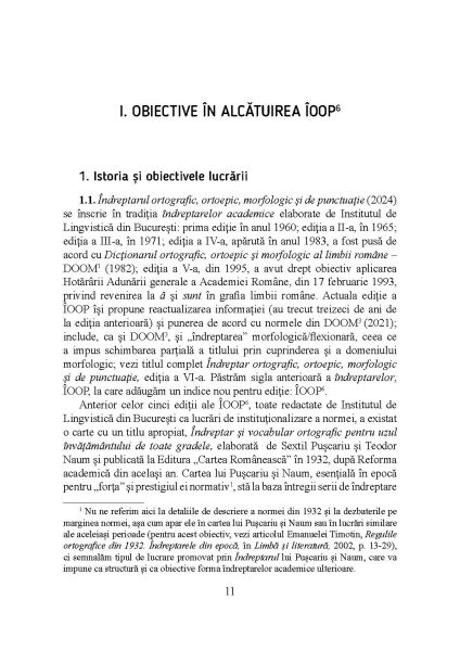 ÎOOP6 continuă tradiția Îndreptarelor academice elaborate de Institutul de Lingvistică din București al Academiei Române (ediția anterioară datează din 1995). Ca și edițiile anterioare, este o lucrare esențialmente normativă, menită să impună norma literară și să ofere soluții corecte în cazurile de variație lingvistică. Lucrarea, public dezbătută, a primit acordul științific din partea Comisiei academice de cultivare a limbii și a Consiliului științific al Institutului de Lingvistică „Iorgu Iordan — Alexandru Rosetti”. Lucrarea a fost aprobată și de conducerea Academiei Române.