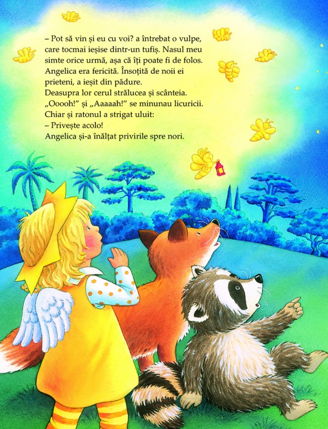 Intr-o noapte de iarnă, când cetele de îngeri plutesc pe cer luminându-l, un îngeraș își pierde bagheta magică. Fără să mai stea pe gânduri, pleacă în căutarea ei, iar pe drum i se alătură, prietenoase și dornice să ajute, animalele pădurii.