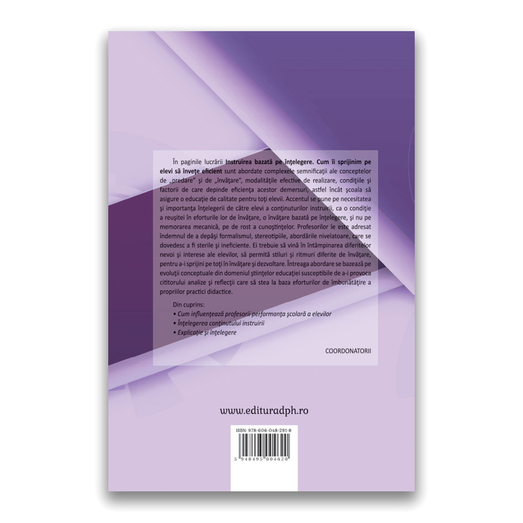 Lucrarea Instruirea bazată pe înţelegere. Cum îi sprijinim pe elevi să înveţe eficient face parte din colecția Sinteze de pedagogie și vă prezintă semnificaţiile complexe ale conceptelor de „predare” şi de „învăţare”, modalităţile efective de realizare, condiţiile şi factorii de care depinde eficienţa acestor demersuri, astfel încât şcoala să asigure o educaţie de calitate pentru toţi elevii.