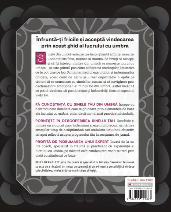 Sinele din umbră este partea inconștientă a ființei noastre, unde trăiesc frica, rușinea și trauma. Să înveți să accepți și să îți înțelegi mintea din umbră se numește lucrul cu umbra – și este primul pas către eliberarea credințelor limitative ce te pot ține pe loc. Prin intermediul exercițiilor și îndemnurilor ghidate, acest caiet de lucru și jurnal cuprinzător îi ajută pe cititori să se conecteze cu sinele lor ascuns și să navigheze prin declanșatorii emoționali ai minții lor din umbră, astfel încât să se poată vindeca, să poată crește și îmbunătăți fiecare aspect al vieții lor.