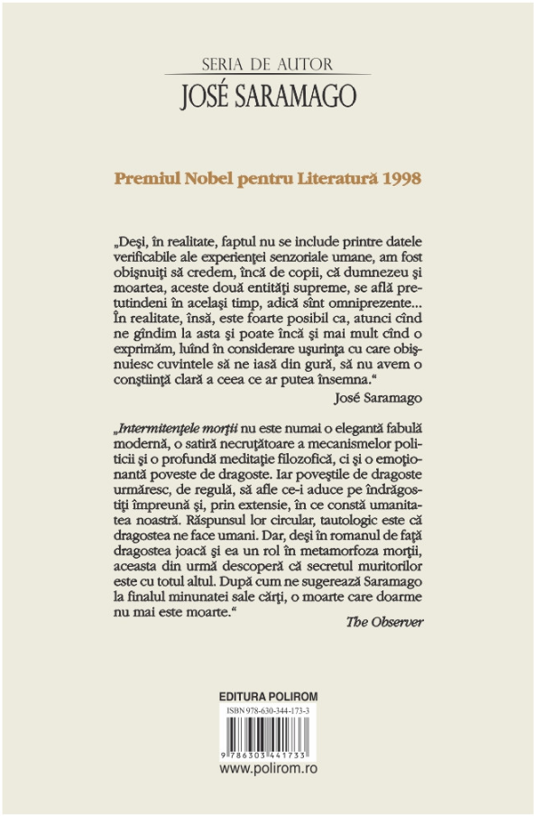 „Deși, în realitate, faptul nu se include printre datele verificabile ale experienței senzoriale umane, am fost obișnuiți să credem, încă de copii, că dumnezeu și moartea, aceste două entități supreme, se află pretutindeni în același timp, adică sunt omniprezente... În realitate, însă, este foarte posibil ca, atunci când ne gândim la asta și poate încă și mai mult când o exprimăm, luând în considerare ușurința cu care obișnuiesc cuvintele să ne iasă din gură, să nu avem o conștiință clară a ceea ce ar putea însemna.” (José Saramago)