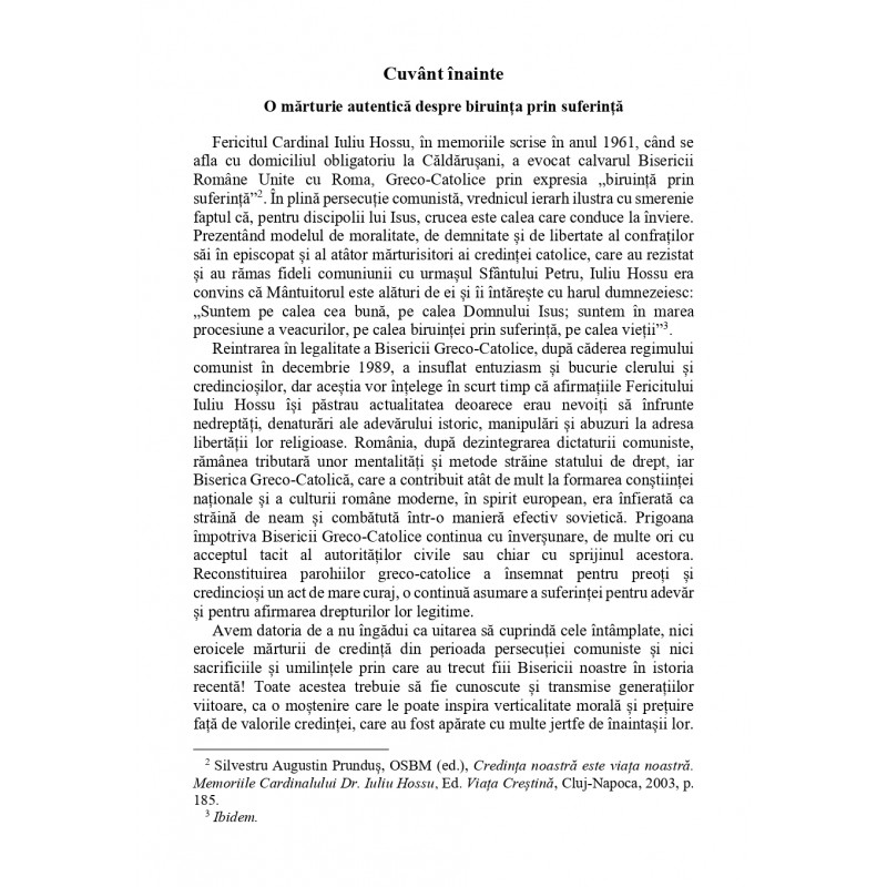 Este, în acelaşi timp, o mărturie avertisment despre intoleranță și manipulare, despre ură şi partizanat, despre metode maloneste şi precaritate spirituală. O mărturie de visu, trăită şi pătimită, despre situația actuală a Bisericii Române Unite cu Roma şi despre o rană a istoriei şi a conștiinței naționale, care nu se închide atâta vreme cât nu este tratată cu adevăr și justiție, cu bună-credință și civilitate.