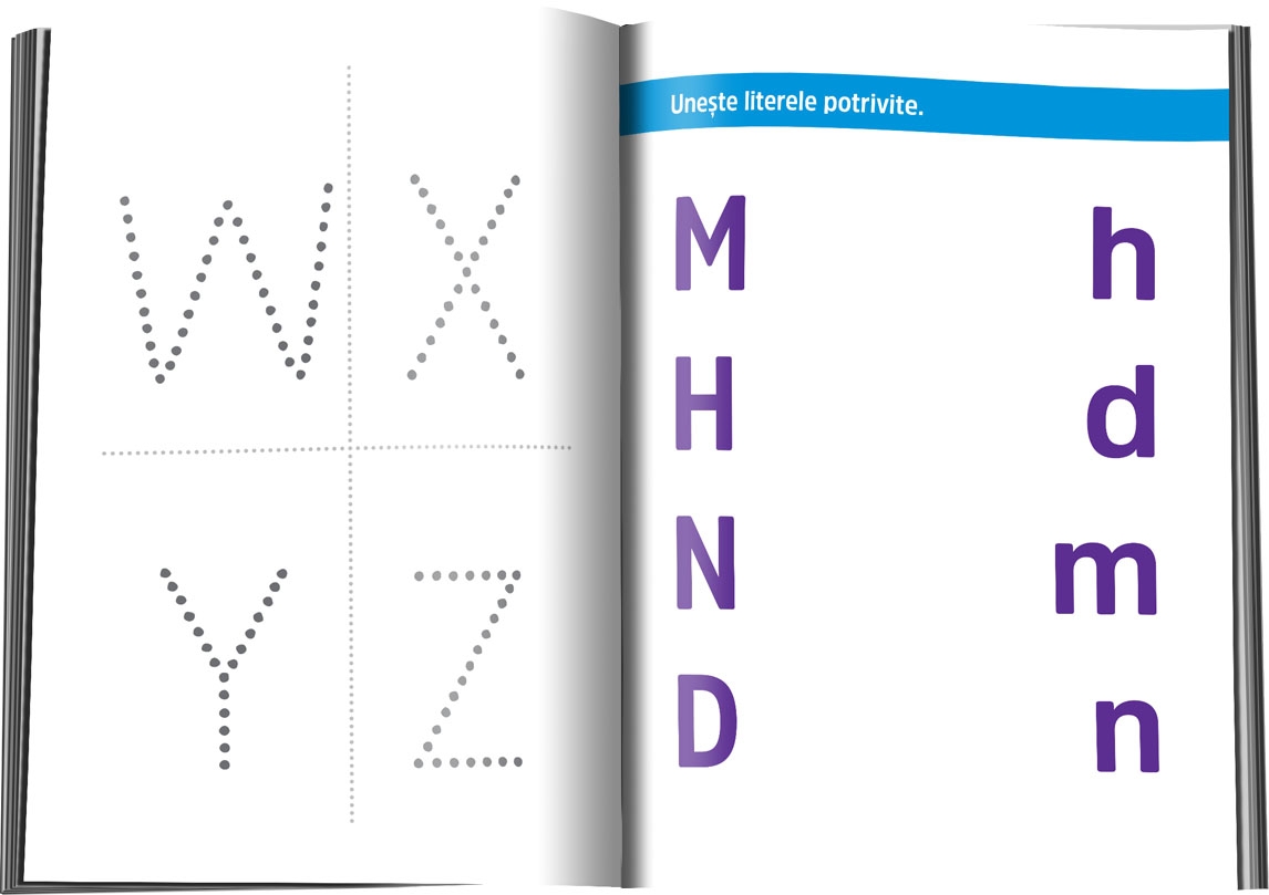 Ordonează literele, găsește imaginile-pereche, recunoaște majusculele, formează cuvinte și fă primii pași în citire, alături de Johny și prietenii lui.