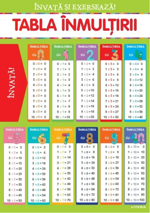 Invata si exerseaza! Tabla inmultirii + exercitii (planse educationale)