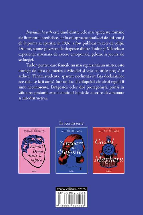 Invitația la vals este unul dintre cele mai apreciate romane ale literaturii interbelice, iar în cei aproape nouăzeci de ani scurși de la prima sa apariție, în 1936, a fost publicat în zeci de ediții. Drumeș spune povestea de dragoste dintre Tudor și Micaela, o experiență măcinată de excese emoționale, gelozie și jocuri ale seducției.