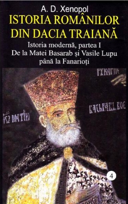 Istoria romanilor din Dacia traiana Vol.umul al IV-lea. Istoria moderna, partea I. De la Matei Basarab si Vasile Lupu pana la Fanarioti. Dupa vol. II-III ale Istoriei romanilor din Dacia Traiana, dedicate perioadei medievale in care predomnea slavismul, A.D.Xenopol deschide cu vol. IV istoria moderna (vol. IV si V) caracterizata prin predomnirea grecismului, dupa care abia va urma triumful romanismului. Spre deosebire de toti ceilalti istorici, el depisteaza zorii fanariotismului inca de atunci, de la domniile celor trei mari voievozi Matei Basarab, Vasile Lupu si Constantin Brancoveanu, care favorizeaza din diverse motive infiltratia greceasca in Principate. E o viziune ce deschide larg portile mai justei intelegeri a trecutului nostru istoric. - I. Oprisan