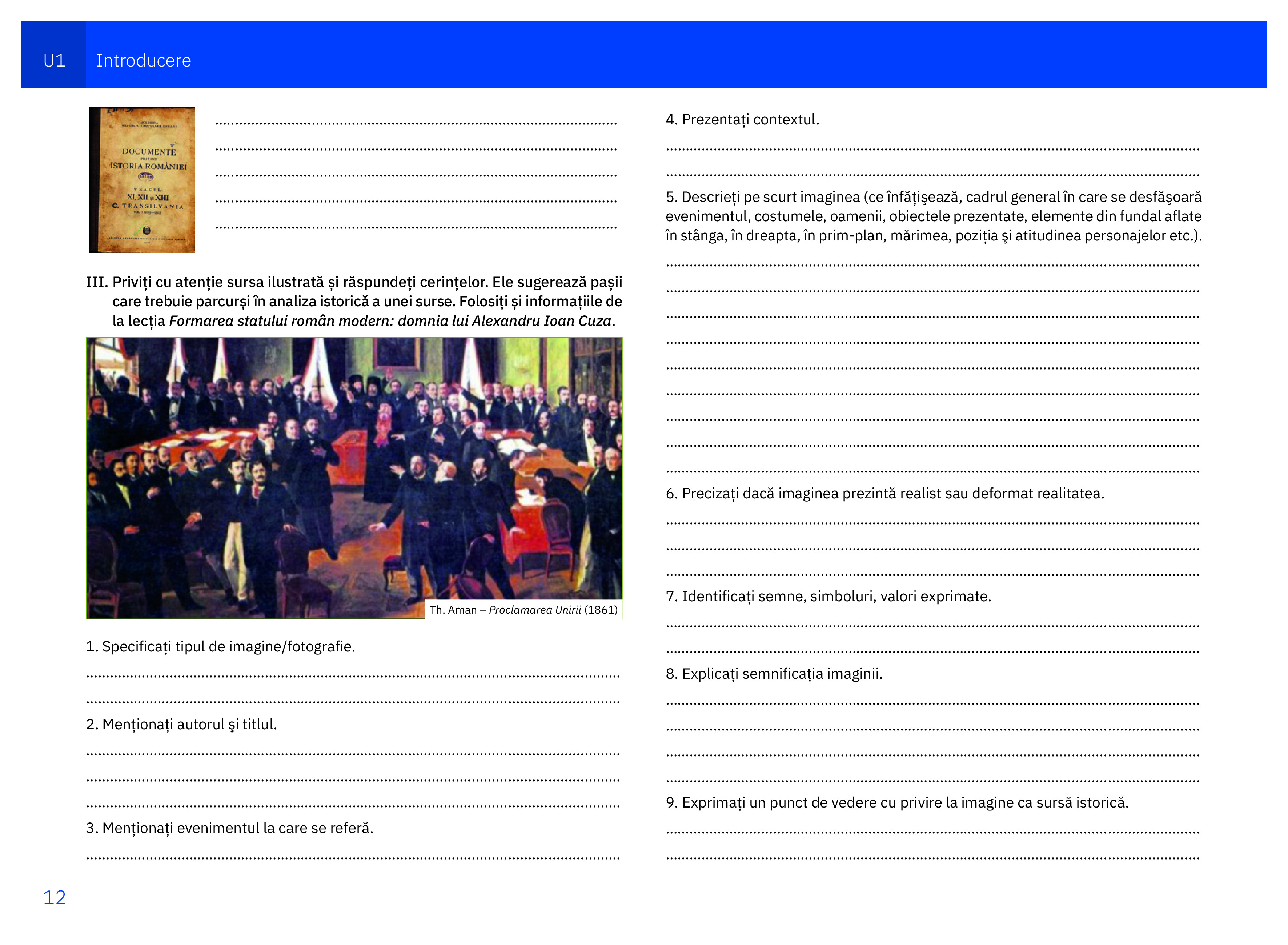 . Argumentarea unei opinii referitoare la un fapt istoric prin utilizarea informaţiilor provenite din diferite surse
