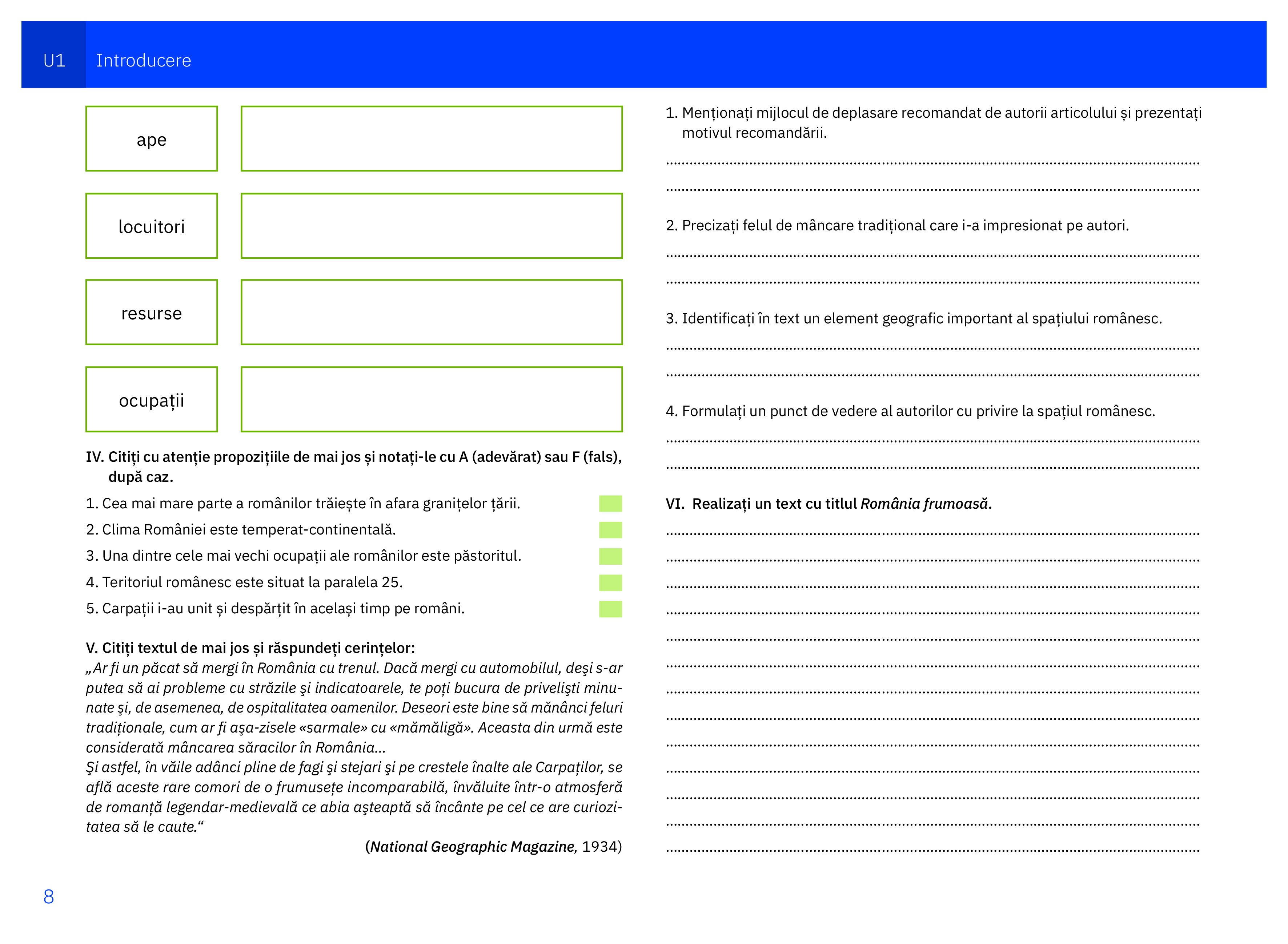 Istorie - Caiet pentru clasa a VIII-a