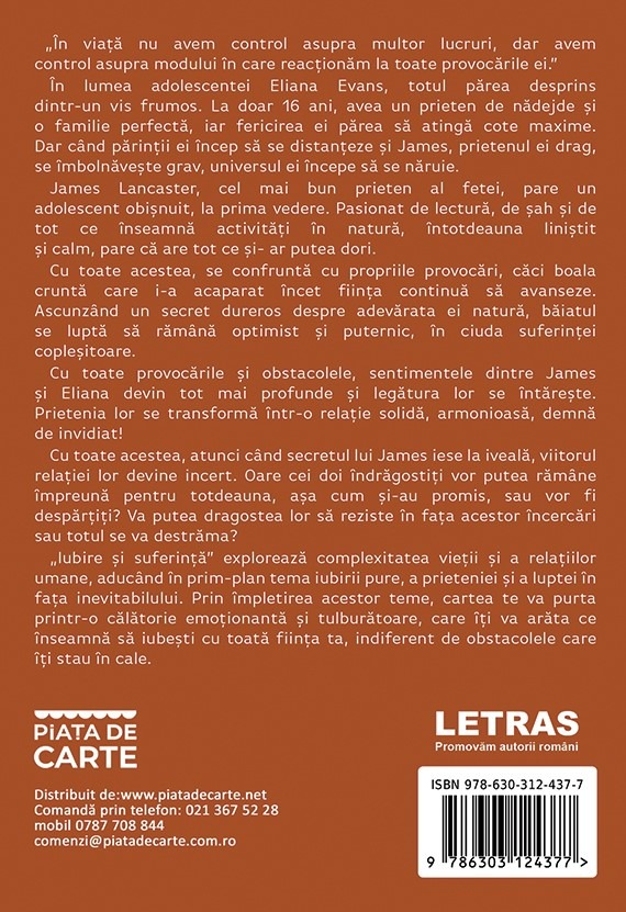 „Iubire si suferinta” exploreaza complexitatea vietii si a relatiilor umane, aducand in prim-plan tema iubirii pure, a prieteniei si a luptei in fata inevitabilului. Prin impletirea acestor teme, cartea te va purta printr-o calatorie emotionanta si tulburatoare, care iti va arata ce inseamna sa iubesti cu toata fiinta ta, indiferent de obstacolele care iti stau in cale.