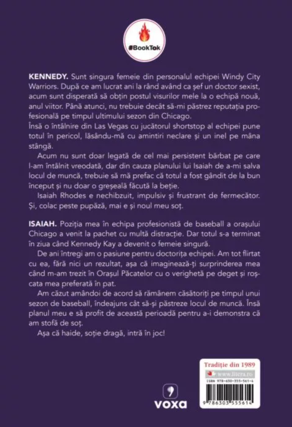 KENNEDY. Sunt singura femeie din personalul echipei Windy City Warriors. După ce am lucrat ani la rând având ca șef un doctor sexist, acum sunt disperată să obțin postul visurilor mele la o echipă nouă, anul viitor. Până atunci, nu trebuie decât să-mi păstrez reputația profesională pe timpul ultimului sezon din Chicago. Însă o întâlnire din Las Vegas cu jucătorul shortstop al echipei pune totul în pericol, lăsându-mă cu amintiri neclare și un inel pe mâna stângă.