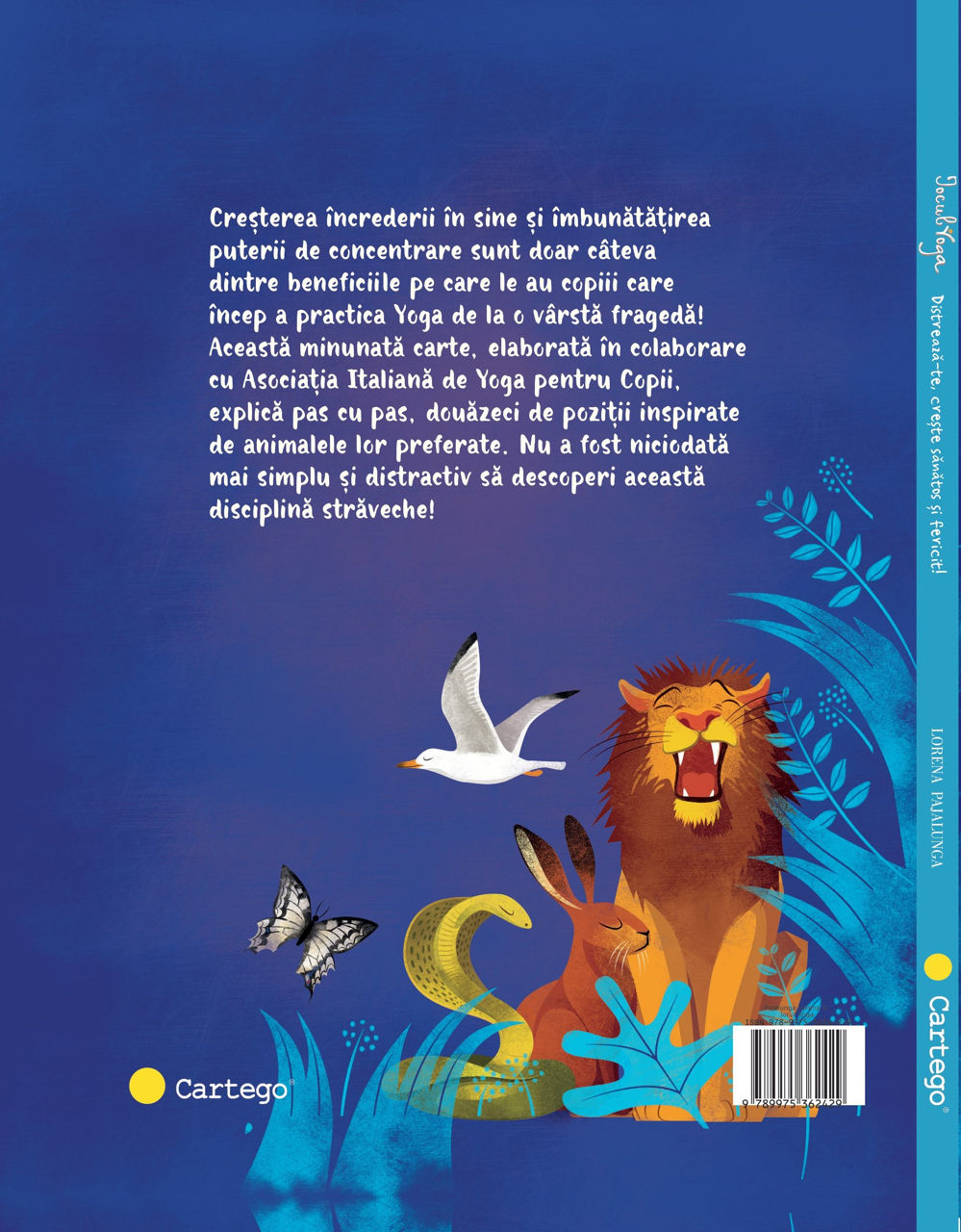 Distrează-te cu yoga! Aceste 20 de poziții inspirate de lumea animalelor îi vor ține pe copii în mișcare. Yoga poate ajuta copiii să rămână sănătoși și liniștiți - iar aceste 20 de poziții, inspirate de lumea animală, fac practica și mai distractivă! Dezvoltat în colaborare cu AIYB (Associazione Italiana de Yoga pentru Copii), această carte prezintă pagini colorate și atractive pentru fiecare poziție, pe care părinții le pot folosi pentru a exersa împreună cu copilului lor. Chiar și cei mai mici yogi pot stăpâni aceste poziții, datorită explicațiilor pline de farmec și instrucțiunilor pas cu pas, precum și ilustrațiilor amuzante realizate de Anna Lang.