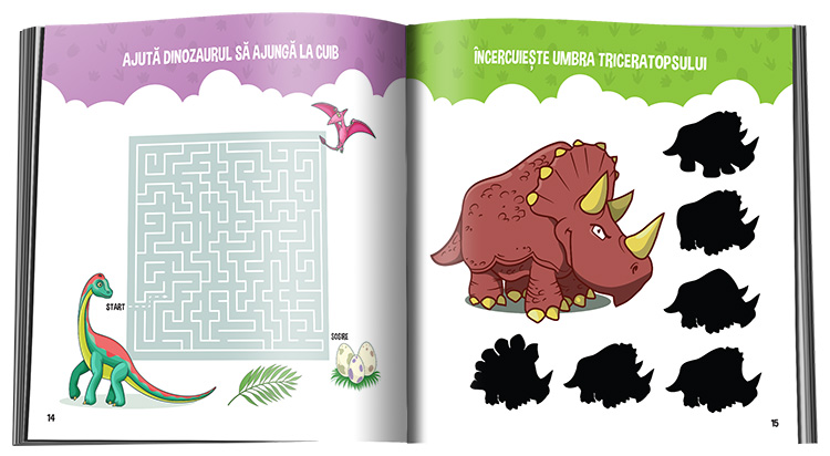 Descoperă cei mai cunoscuți și mai simpatici dinozauri și rezolvă tot felul de activități colorate și amuzante alături de ei!