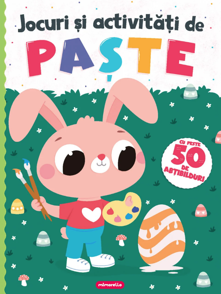 Cartea conține jocuri și activități cu tematică de Paște, dar și peste 50 de abțibilduri atractive.