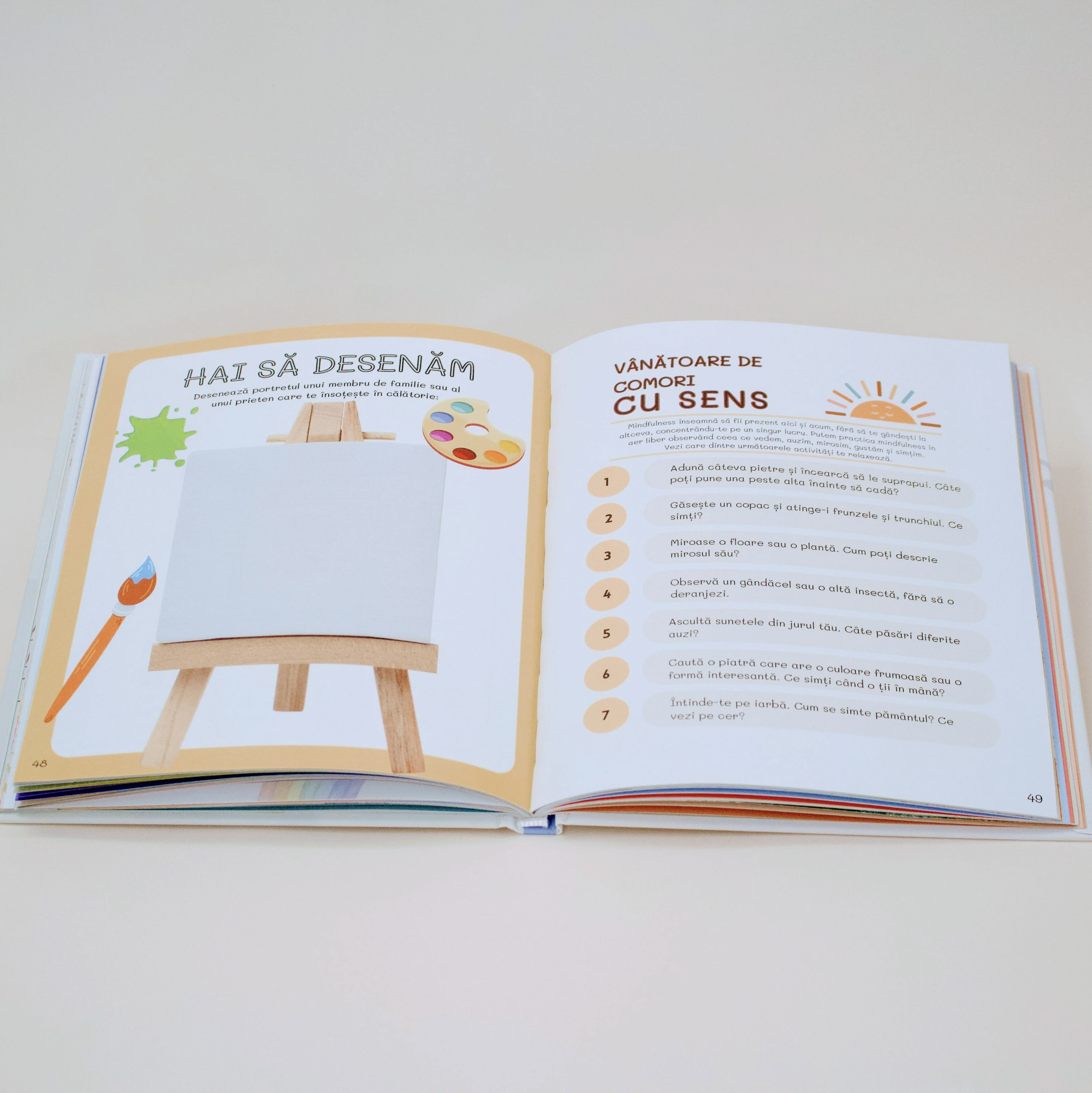 • Călătorii cu sens: Fiecare pagină îi provoacă să exploreze cu curiozitate, să pună întrebări și să creeze amintiri noi.