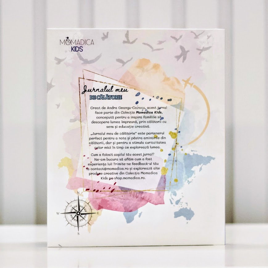 Primul jurnal de călătorie din colecția Momadica Kids este conceput pentru a însoți copiii în orice aventură, fie că se află aproape de casă sau în colțuri îndepărtate ale lumii. Pe lângă activitățile generale de explorare, jurnalul include și câteva pagini speciale de activități cu tematica Europa, care îi introduc pe cei mici în cultura și diversitatea acestui continent.