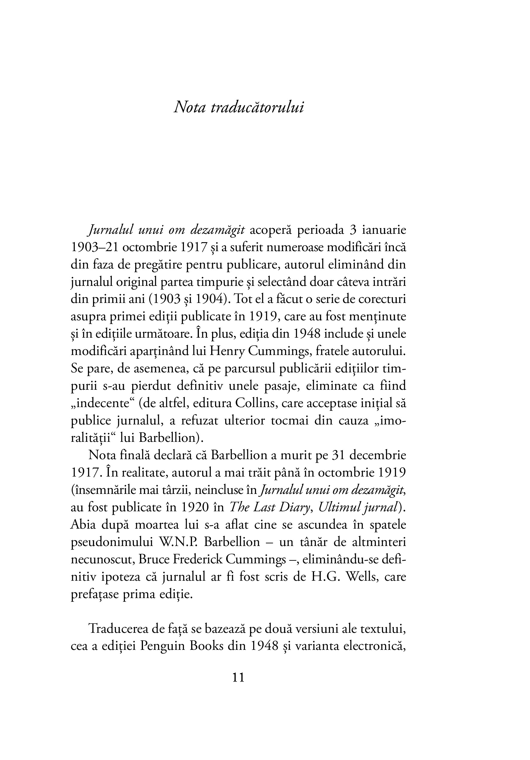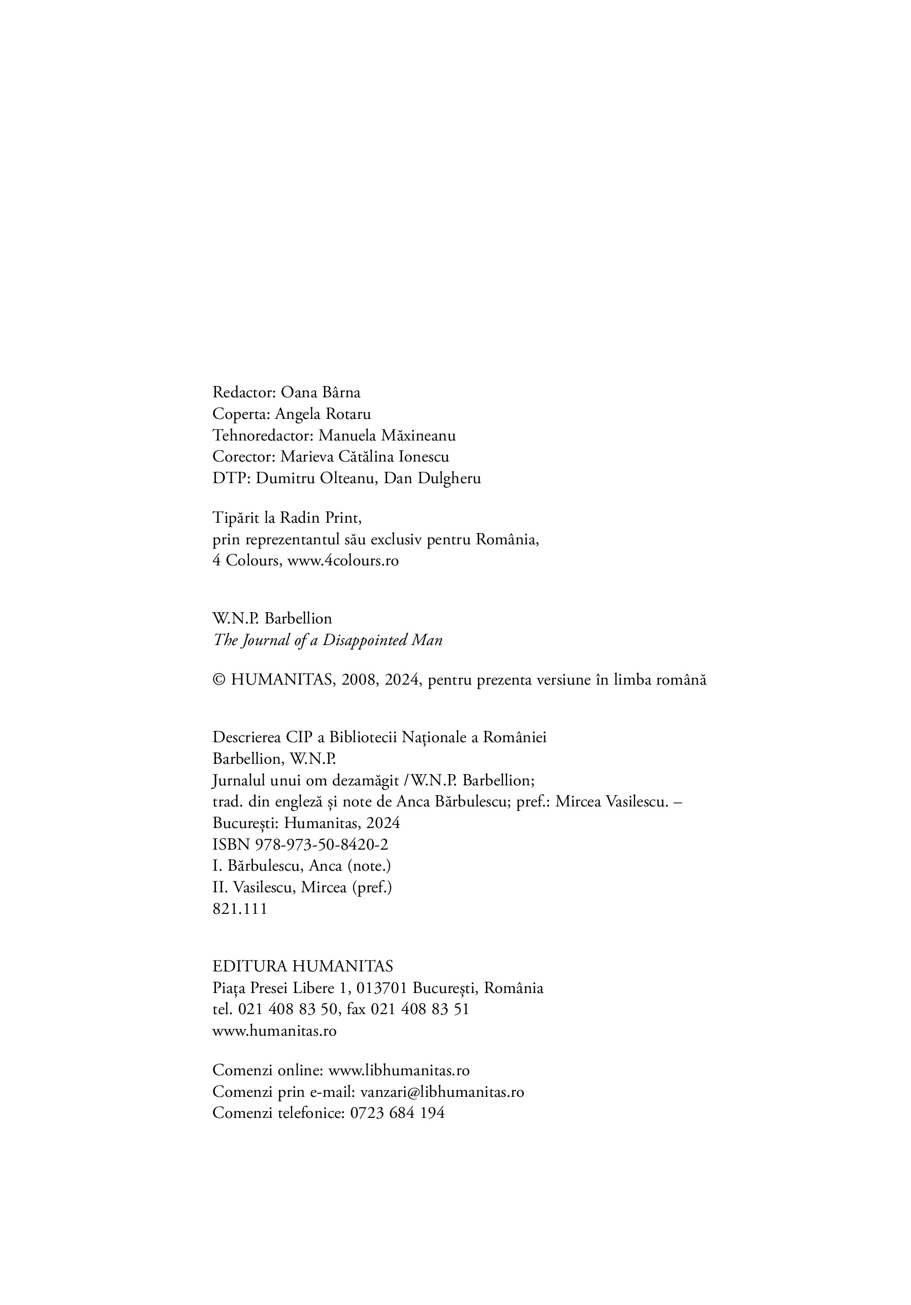 „Unul dintre cele mai emoționante jurnale scrise vreodată“, s-a spus despre volumul lui Barbellion, care a fost comparat cu Joyce și Kafka. Cartea făcea furori printre intelectualii români din interbelic. O citea, de pildă, Jeni Acterian, consemnând în propriul jurnal asemănarea ei cu Barbellion. În ciuda celebrității sale, Jurnalul unui om dezamăgit a rămas mult timp netradus în românește. Excepționala versiune dată de Anca Bărbulescu unui text dificil și prefața lui Mircea Vasilescu încearcă să repare această nedreptate.