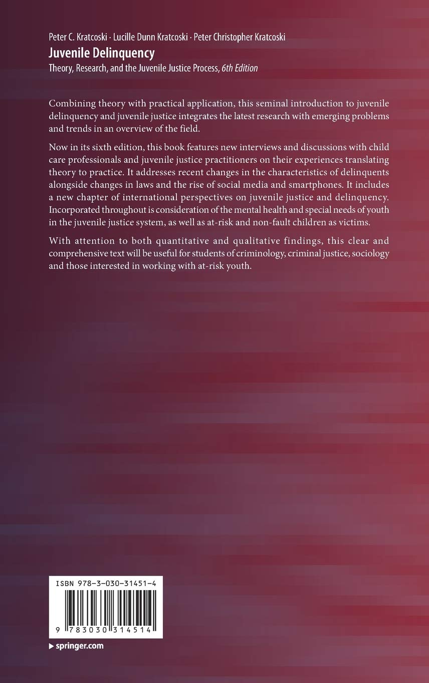 Now in its sixth edition, this book features new interviews and discussions with child care professionals and juvenile justice practitioners on their experiences translating theory to practice. It addresses recent changes in the characteristics of delinquents alongside changes in laws and the rise of social media and smartphones. It includes a new chapter of international perspectives on juvenile justice and delinquency. Incorporated throughout is consideration of the mental health and special needs of youth in the juvenile justice system, as well as at-risk and non-fault children as victims.