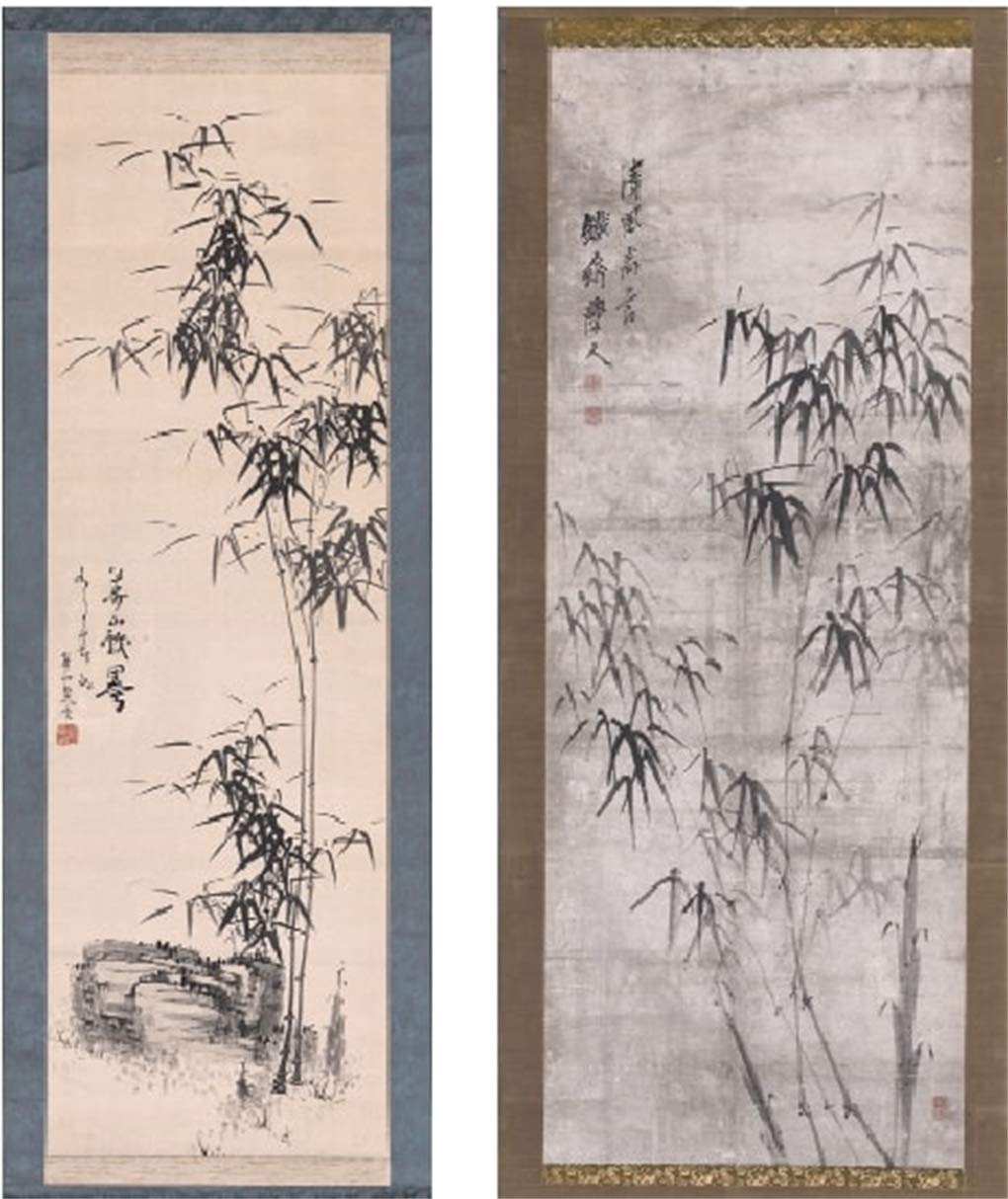 Once displayed for the tea ceremony and in the alcove (tokonoma) of traditional houses, the kakemono or kakejiku is a ‘painted hanging scroll,’ which, in the variety of its themes, describes changing beauty and the flow of time. Subjects are in fact selected to satisfy the taste of the visitors, and harmony with seasons and events. As with Japanese writing, it should be read from right to left.