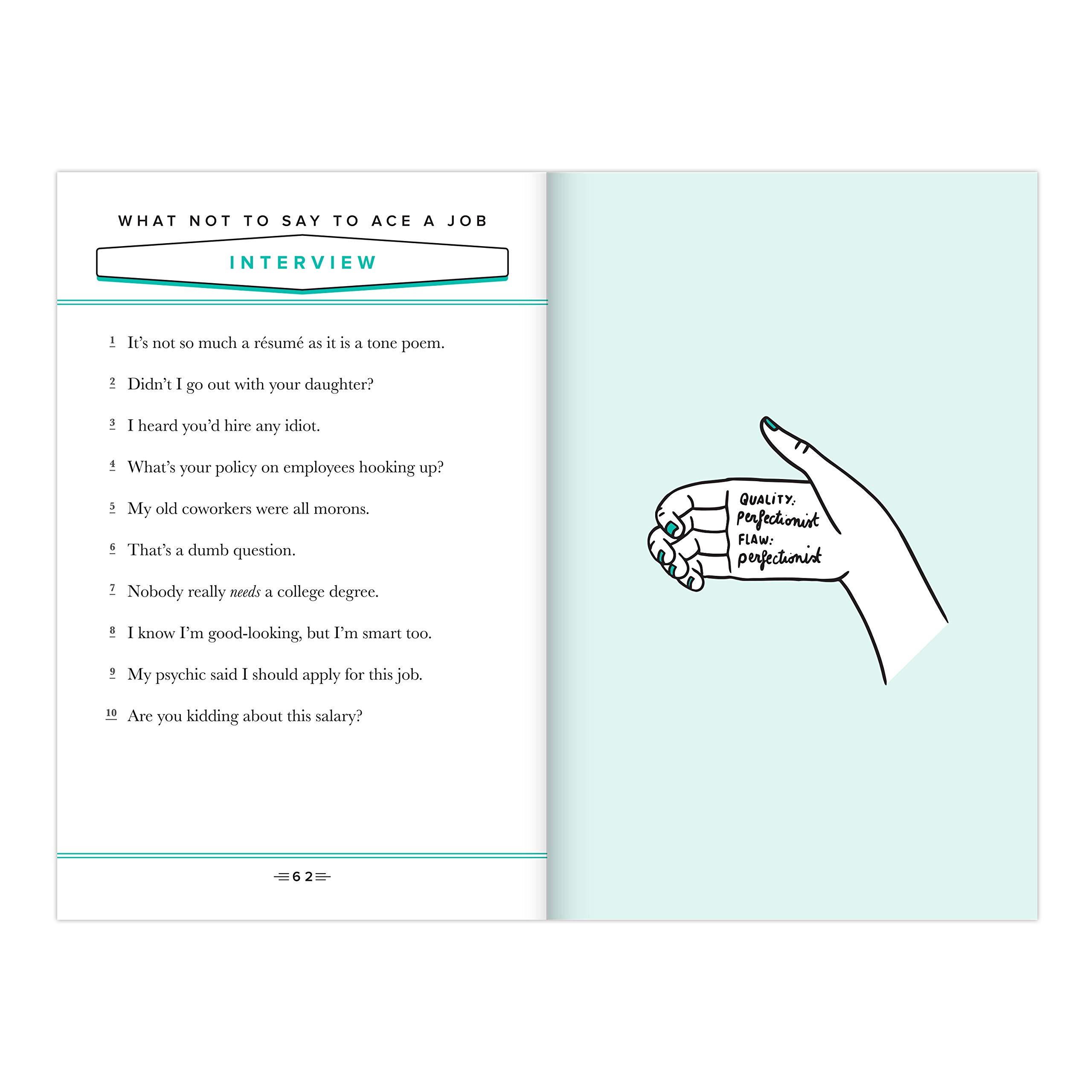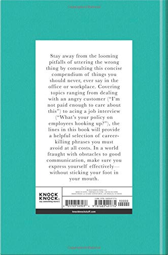 A brutally honest collection of 610 things you should never, ever say in the office or workplace. Learn what not to say to an angry customer ("I'm not paid enough to care about this."), what not to ask while at a job interview ("What's your policy on employees hooking up?"), and what your boss never wants to hear ("Good, fast, cheap: pick two."). Shares helpful work advice: don't utter these phrases aloud!Keep this funny book handy to avoid dying aloneNeed gifts for coworkers? A handy volume filled with career-killing phrases to avoid ensures their job security