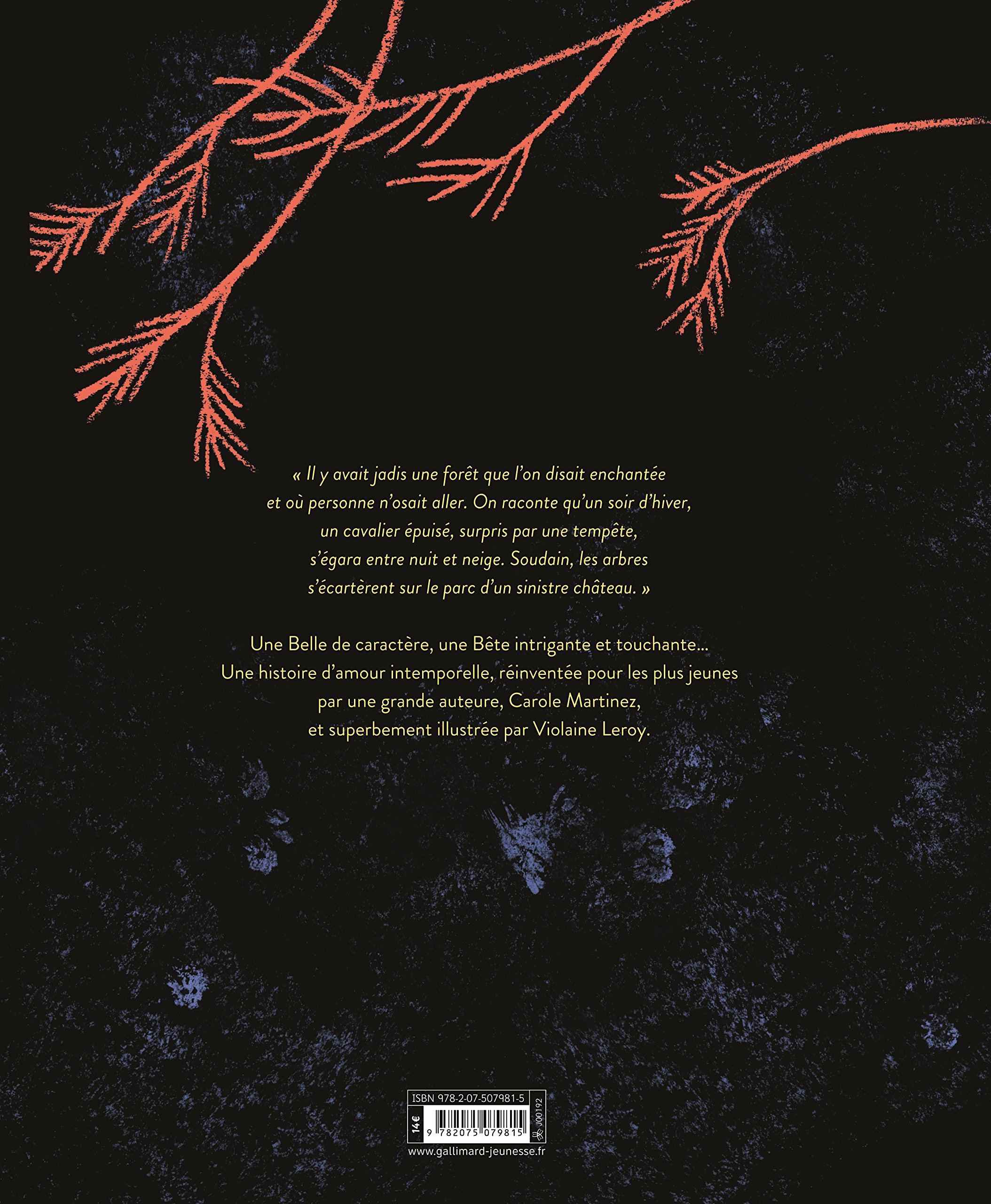 Une Belle de caractère, une Bête intrigante et touchante... Une histoire d'amour intemporelle, réinventée pour les plus jeunes par une grande auteure, Carole Martinez, et superbement illustrée par Violaine Leroy.
