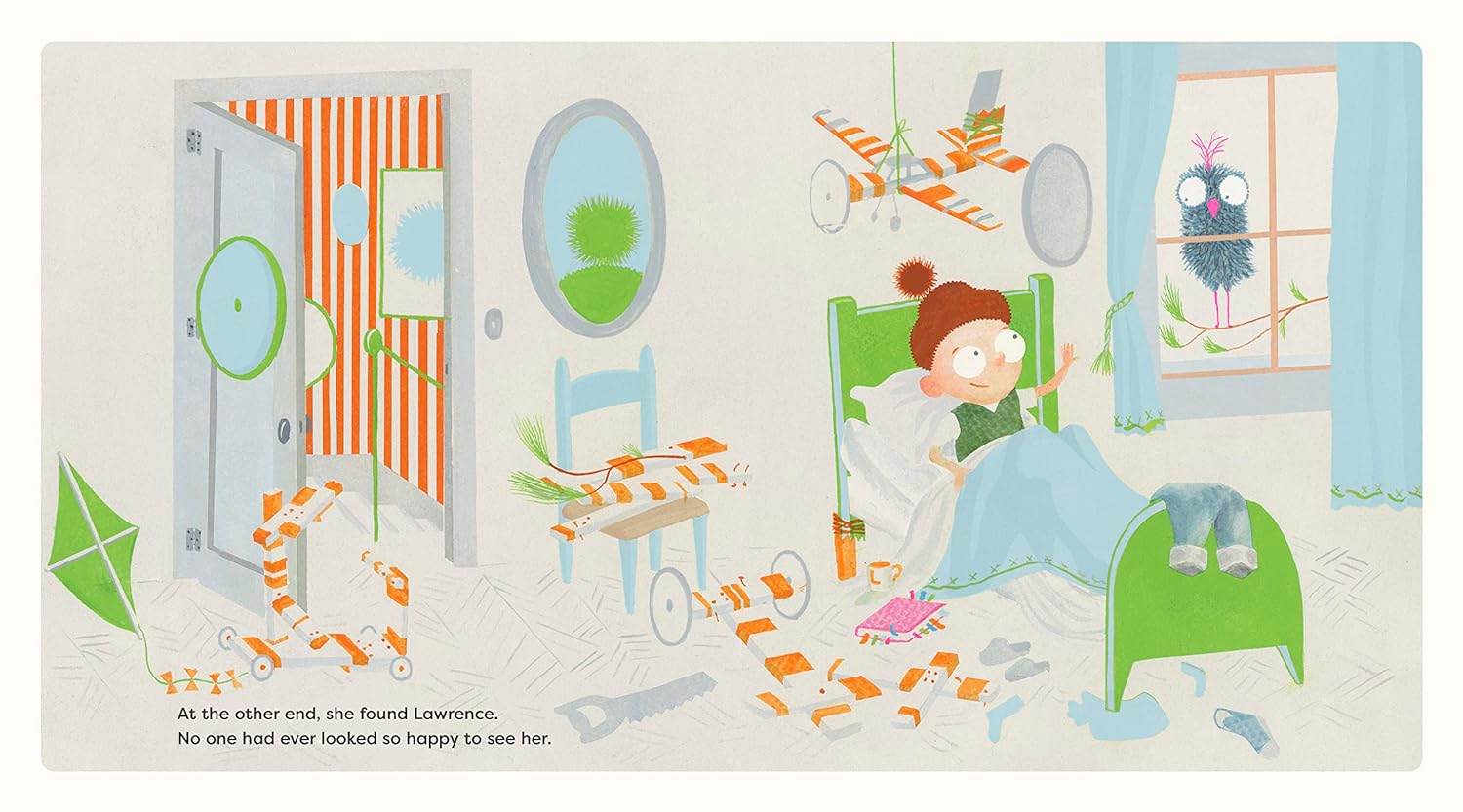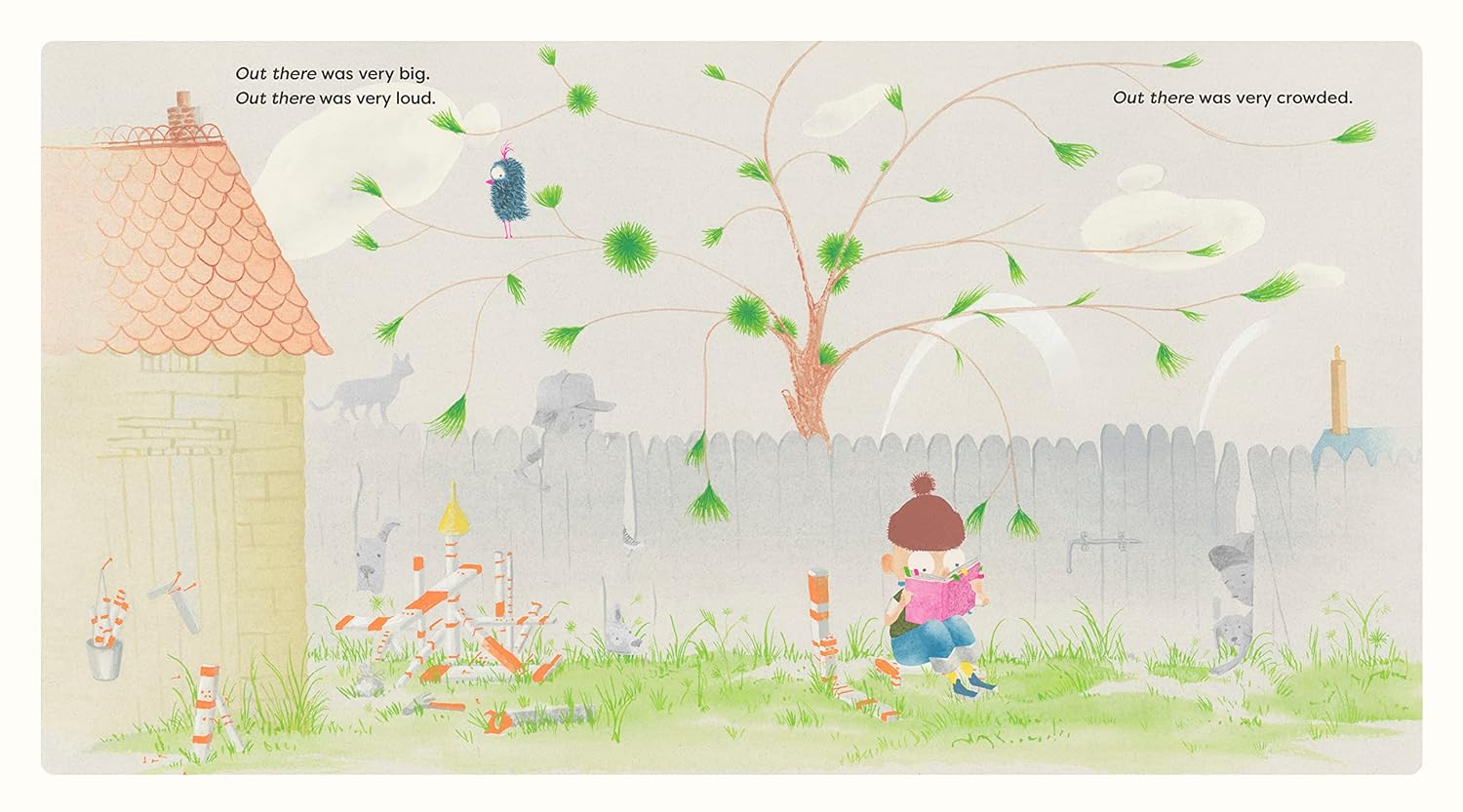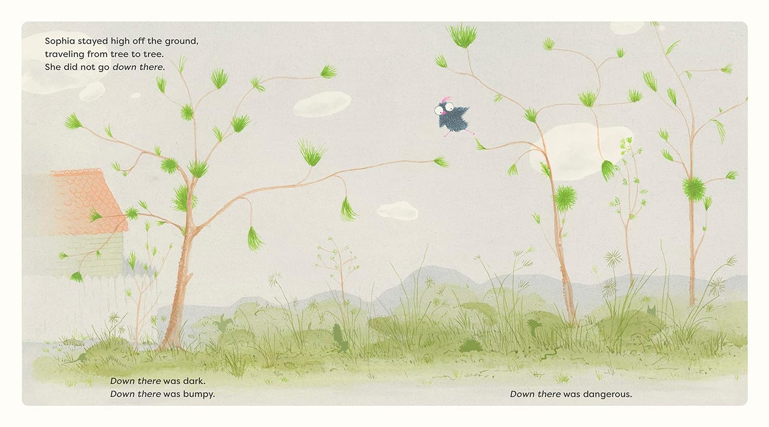 Lawrence stays close to home because "out there" is too big and loud. Sophia stays high up in the tree branches because "down there" is too dark and dangerous. When they meet and become friends, they find ways to enjoy each other's company without leaving their own safe spots . . . until a storm comes, and both are so worried about the other that they are finally able to take a huge, scary leap into the unknown. Together they feel brave, and the future is suddenly a lot more interesting.