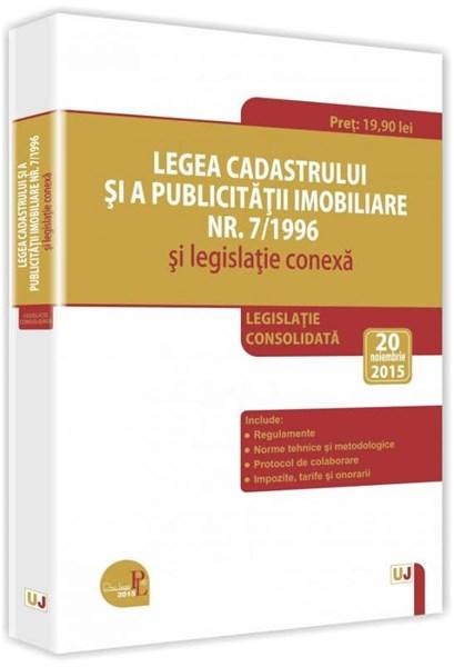 Actualizata la data de 20 noiembrie 2015 si imbogatita cu note si referinte relevante, culegerea Legea cadastrului si a publicitatii imobiliare nr. 7/1996 si legislatie conexa cuprinde cele mai importante acte normative din domeniu, integral sau in extras (dupa caz), constituind, astfel, un instrument de lucru util nu doar pentru persoanele fizice sau juridice implicate direct si permanent in activitati cadastrale si de publicitate imobiliara, ci si, in general, pentru notari, avocati, consilieri juridici, magistrati, mediatori, si chiar pentru publicul larg: