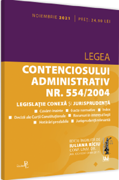 Culegerea intitulată Legea contenciosului administrativ nr. 554/2004, legislaţie conexă şi jurisprudenţă, aflată acum la ediţia a 6-a (revizuită), a pornit de la realitatea că actuala reglementare a contenciosului administrativ prin Legea nr. 554/2004 (intrată în vigoare la începutul anului 2005) reprezintă un veritabil pas înainte şi o evoluţie a legislaţiei în această materie.