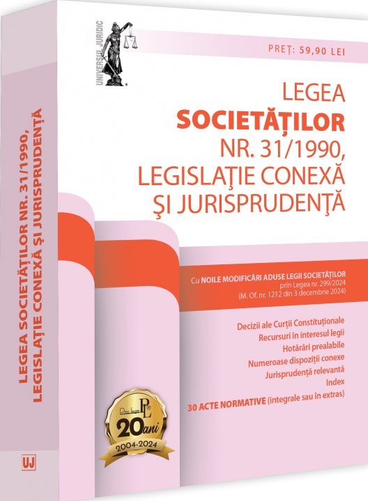 • Legea societatilor nr. 31/1990 (cu un index concis, dar relevant, si cu noile modificari aduse prin Legea nr. 299/2024 – M. Of. nr. 1212 din 3 decembrie 2024);