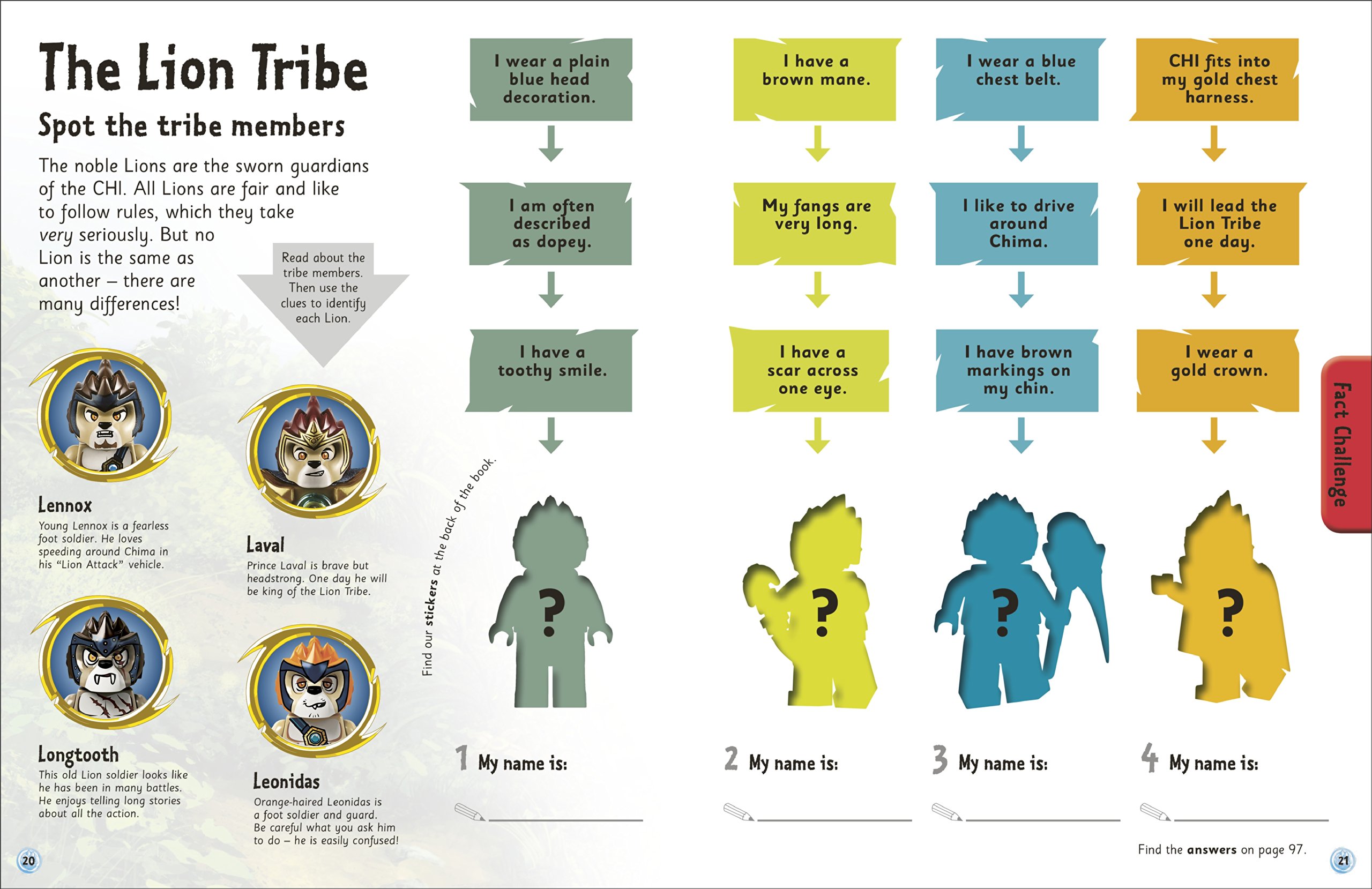 Packed with puzzles, games, doodles and over 500 stickers to accompany amazing facts and information. Discover the magical, mystical world of Chima! Learn all about the animal tribes that inhabit this world and their battle for CHI, the ultimate energy source. Read the clues to identify each member of the Lion Tribe, make your way through a maze to reunite a lost Wolf with the Wolf Tribe, draw your own comic strip of a battle, or test your knowledge with a fun, Chima Challenge quiz.