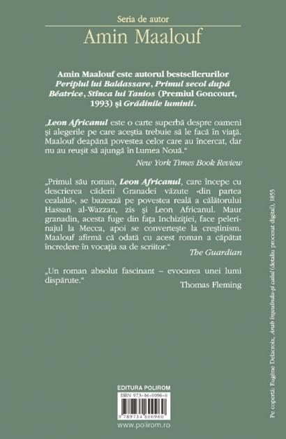 Romanul exploreaza ciocnirea a doua civilizatii, islamul si crestinatatea, folosind ca pretext periplurile unui aventurier si geograf arab, personaj real, Hassan al-Wazzan. Nascut in Spania la putin timp dupa alungarea maurilor, in 1492, Hassan creste in Africa de Nord, traverseaza desertul Sahara pina in Tombuctu, ajungind in cele din urma la Cairo, in ajunul cuceririi acestuia de catre otomani. Intr-una dintre aventurile sale, Hassan poposeste in Roma Papei Leon al X-lea, care il boteaza Leo Africanus. Drumurile protagonistului aduc in paginile cartii o sumedenie de personalitati contemporane lui, printre care Columb, familia Medici, Martin Luther si Soliman Magnificul.