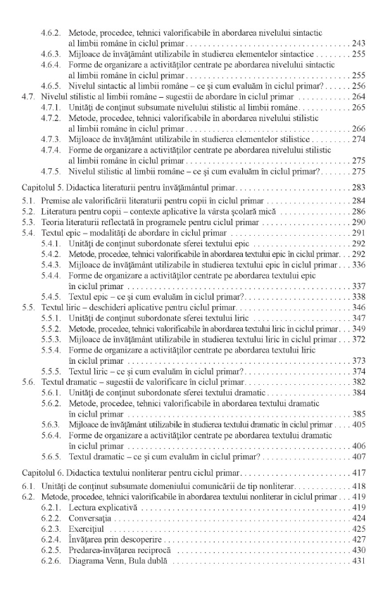 Structurat pe baza celui mai recent curriculum pentru învățământul primar, volumul le oferă cititorilor, în cele șapte capitole, atât informații despre programă și despre cum ar trebui organizată o oră de clasă, cât și metode didactice potrivite, bibliografii școlare atractive, sugestii de jocuri didactice menite să faciliteze înțelegerea operelor literare studiate și propuneri de exerciții interactive care să dezvolte creativitatea.